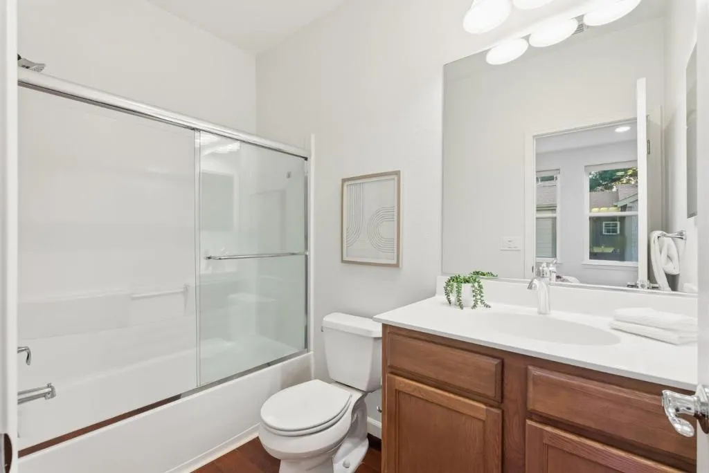 Welcome to Evelyn Glen, located in the heart of Sunnyvale surrounded by soaring Redwoods minutes from Downtown Sunnyvale and both new Apple campuses & CalTrain! Luxurious End Unit Townhome featuring extra windows on all levels that let in loads of natural light and a bedroom on the main level w/ a WIC and access to a full bath. Vibrant hardwood floors, high ceilings w/ recessed lighting, tall double pane windows, elegant tile features & more! Ground Floor features a bonus Family Room & Full Bath w/ floor to ceiling elegant tiles. Open Great Room concept with Living Room, Dining Room and Kitchen combo. Luxurious Kitchen complete w/breakfast bar, stainless steel appliances, large pantry & granite counters. Spacious Owners Suite w/ WIC & en-suite bath w/ dual sinks. Jr Suite also located on upper level w/extra windows, en-suite bath & large closet. Laundry is conveniently located on the upper level. Private patio, great for BBQ’s. Lower HOA w/Clubhouse, playground, open field and more! Minutes from newly built Downtown Sunnyvale w/ loads of restaurants, Whole Foods, AMC, Target and more! Short drive to CalTrain, El Camino Real, Central Expressway, Lawrence Expressway, and 101. Easy access to the major companies such as both Apple Campuses, Nvidia, Amazon and Google. Don’t miss out!