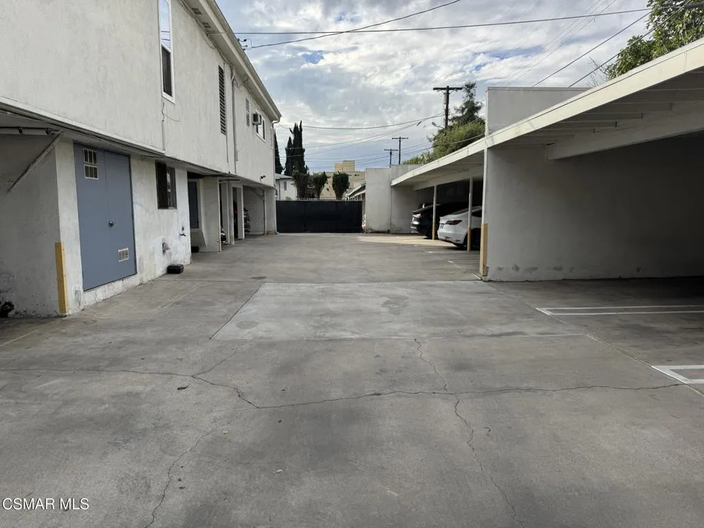 Spacious second floor studio apartment located in a secured gated complex in the Valley Glen area of Van Nuys! New paint, newer flooring. Walk into the large open living space. Separate kitchen area with small breakfast nook. Large closet that leads to the bathroom with single vanity and tub/shower combo. Large balcony accessible via slider looks over the open center courtyard. Private gated parking area with 1 assigned covered parking spot. Refrigerator included. Wall A/C. Communal Laundry room. Gas, Water, and Trash are included.