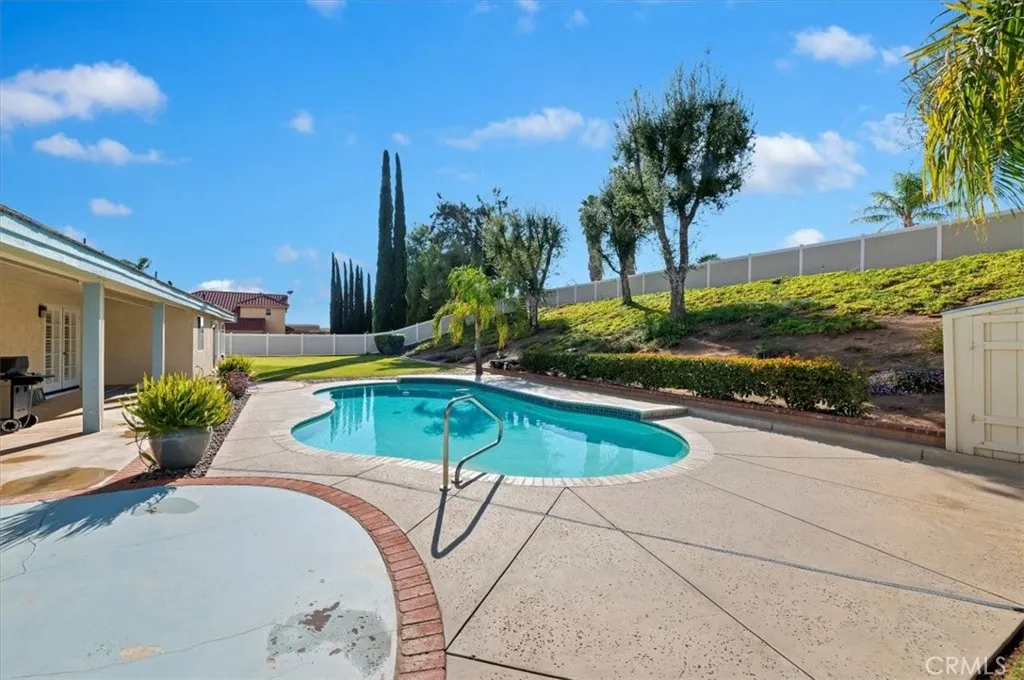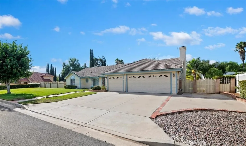 Beautiful 4 bedroom, 2.5 bath home with RV parking potential, option for two driveways and a POOL! This home has it all!! Fantastic home on nearly half an acre, plenty of room for entertaining and relaxing in this tranquil backyard with a large stunning pool, mature landscaping, covered patio, and room for year round entertaining. This home features vaulted ceilings, tile flooring, lots of windows and sliding doors to let in all the natural light. Kitchen with island and bar seating that opens up to the family room with a fireplace for those chilly nights. Primary bathroom has a dual sink vanity and a separate shower and soaking tub. Large laundry room with sink and plenty of cabinets for storage. Spacious guest bedrooms, fantastic views, quiet neighborhood…updates inside and out. Very rare combination to have this popular floorplan, single story, large lot, 3 car garage, and a POOL at this price.