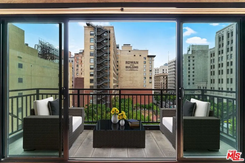 This crisp, intelligently designed residence at the El Dorado Lofts blends old-world charm with modern convenience. The bright, open-concept layout features a generous kitchen with stainless steel appliances, black granite countertops, in-unit washer and dryer, central HVAC, and a spacious bathroom with a deep-soaking tub. Additional highlights include hardwood floors, exposed concrete walls and beams, and original interior doors that speak to the building’s historic character. The kitchen, dining, and living areas all enjoy sweeping views of the park and the vibrant Historic Core through expansive sliding glass doors that open to a private balcony perfect for taking in the city’s energy while enjoying your own peaceful sanctuary. Once known as the “Wall Street of the West,” the Historic Core remains the beating heart of Downtown L.A., offering some of the best shops, restaurants, bars, galleries, and entertainment in DTLA. The building offers 24/7 controlled access, with optional on-site parking available for $250/month. A must-see!