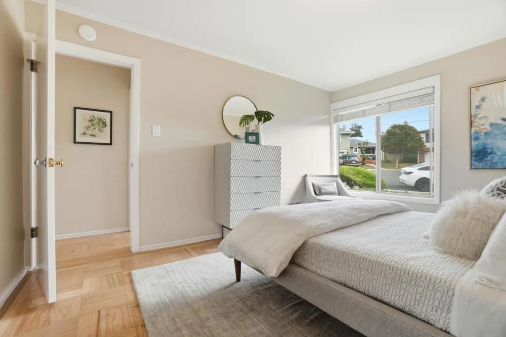 Peaceful cul-de-sac setting with scenic views of Orange Park and South San Francisco. This well-maintained 4BD/2BA home offers 1,773 sq. ft. of comfortable living on a 5,142 sq. ft. lot. Highlights include hardwood, fresh paint, eat in kitchen and separate kitchenette upstairs IN 4 room, an extended driveway with ample parking, landscaped backyard featuring apple, plum, lemon, and pear trees, and a near full-height basement ideal for storage, workshop use, or future expansion. Dual attic and basement access provide excellent upgrade potential. Meticulously cared for by long-time owners with detailed records dating back to 1961. Located on historic Lilac Lane, known for its holiday displays, and close to top-rated schools, parks, shops, restaurants, BART, and major commuter routes