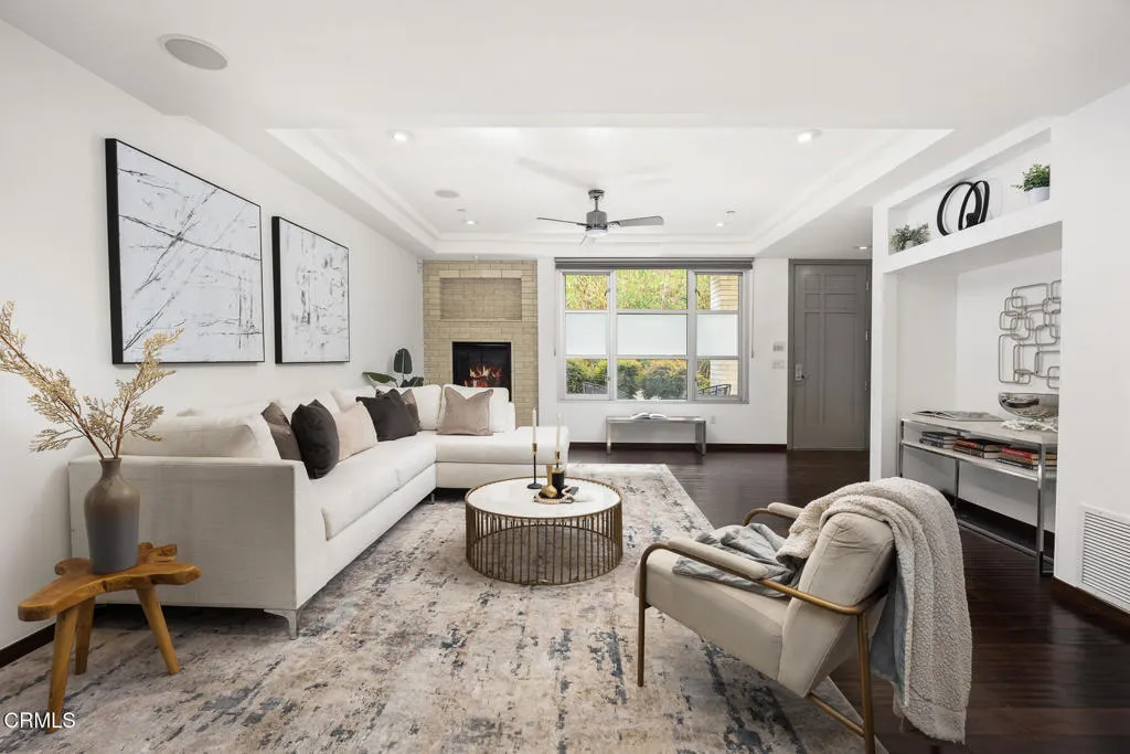 Introducing Hudson Terrace–a strikingly modern luxury townhome built in 2009, nestled in Pasadena’s coveted South Lake Avenue District. Just one block from upscale shopping, premier dining and entertainment, and top-tier fitness options, this location offers the ultimate in urban convenience.Inspired by Bauhaus architecture, the exterior showcases a cutting-edge Trespa Meteon rain shield system, sandblasted glass balcony railings, and interlocking custom pre-cast brickwork. This ground-floor corner unit enjoys unobstructed views of the serene Zen-style courtyard, anchored by an impressive 80-foot horizontal water feature.Inside, the residence exudes sophistication. The gourmet kitchen is outfitted with sleek Italian cabinetry, honed black granite countertops, a Bertazzoni range, and Bosch stainless steel appliances. Rich espresso-toned distressed wood flooring flows throughout the home, adding warmth and contrast to the modern design.Upstairs, the primary suite offers a spacious walk-in closet by Dall’Agnese and is accented by a pre-cast brick fireplace, expansive industrial-style windows, and a glass door leading to a private balcony overlooking lush bamboo landscaping. The ensuite bath is a spa-like retreat, featuring a steam shower, six-jet soaking tub, Duravit double vanity, and exquisite imported stone finishes.With refined contemporary touches and a location that places the best of Pasadena at your doorstep, this exceptional townhouse is not to be missed.