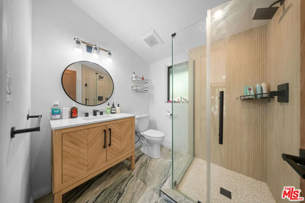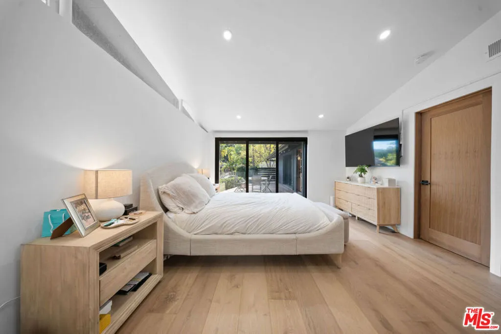 Set in the desirable neighborhood of Woodland Hills, this exquisite 3-bedroom, 2-bathroom home is a true blend of style and functionality. Positioned on a peaceful hillside, it offers breathtaking views and is filled with natural light, thanks to expansive windows and floor-to-ceiling pocket doors. The home features a mix of timeless design and modern updates, including custom wood finishes, walnut doors, a white oak garage door, oak flooring, a flagstone fireplace, and handcrafted cabinetry. The open layout creates a seamless flow between the indoors and outdoors, where you can enjoy tranquil water features, a mature landscape, and stunning sunrise views. High ceilings and spacious rooms make the home perfect for both family gatherings and entertaining, all enhanced by a built-in sound system. The three bedrooms offer plenty of space and privacy, with the primary suite offering its own walk-in closet and bath. Nestled on a quiet street, this property combines privacy with convenience, just minutes from Ventura Blvd, Topanga Canyon Mall, cafes, and top-rated schools.