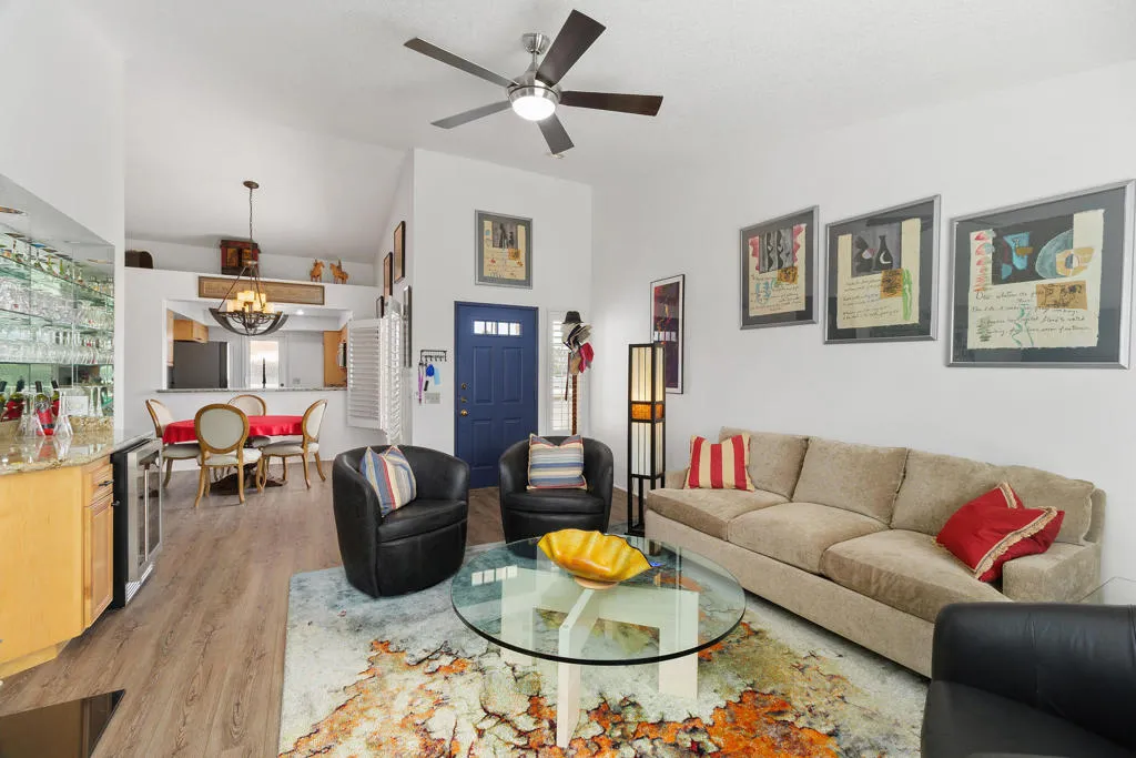 Welcome to one of the finest 2-bedroom upper-unit condos in prestigious Desert Falls Country Club! Perfectly positioned near the 11th hole, this gem offers stunning greenbelt views stretching down the fairway. Located on Desert Falls Circle, it sits in a highly sought-after, quiet, interior location–just a short walk to the Clubhouse, Restaurant, Fitness Center, Pools, and Tennis & Pickleball Courts. VIEWS off the Living Room & Master Bedroom as you sit out on your balcony is perfect for taking in breathtaking sunsets. Offering a spacious open layout with bedrooms on opposite ends for privacy, abundant natural light, tile flooring throughout, cozy fireplace in the living room, granite kitchen counters, stainless steel appliances, and remodeled walk in Showers in both bathrooms, this home provides an ideal opportunity to experience your own desert oasis.HOA dues include all exterior, roof, fitness membership w/ tennis & famous pickle ball! Wi-fi, cable, 24 hr. security, and access to 30 plus pools. Youth to adult sports activities are available as well as a pro shop. Partake in casual meals and happy hour at the Desert Falls Grill Golf is on a pay as you play basis, or you may choose to purchase a membership here at Desert Falls Country Clubs Scottish Links, 18 hole Championship Golf Course which has been rated as one of the 10 top courses by the SCPGA and awarded a 4-Star rating from Golf Digests ”Best Places to Play”! Furnishings included per Seller’s Inventory