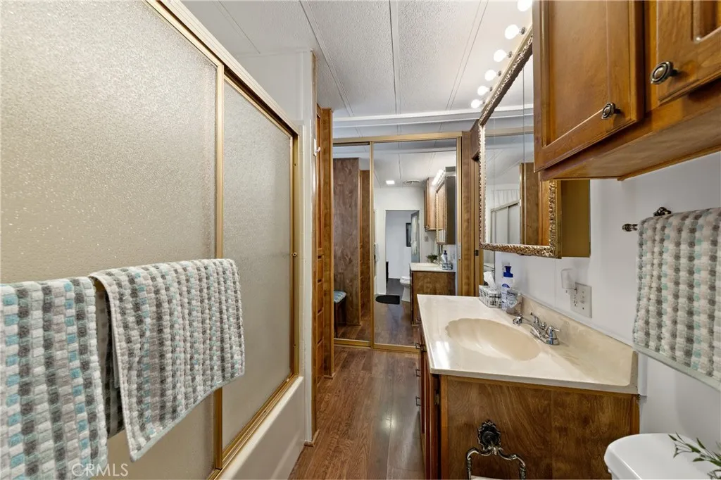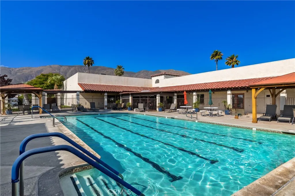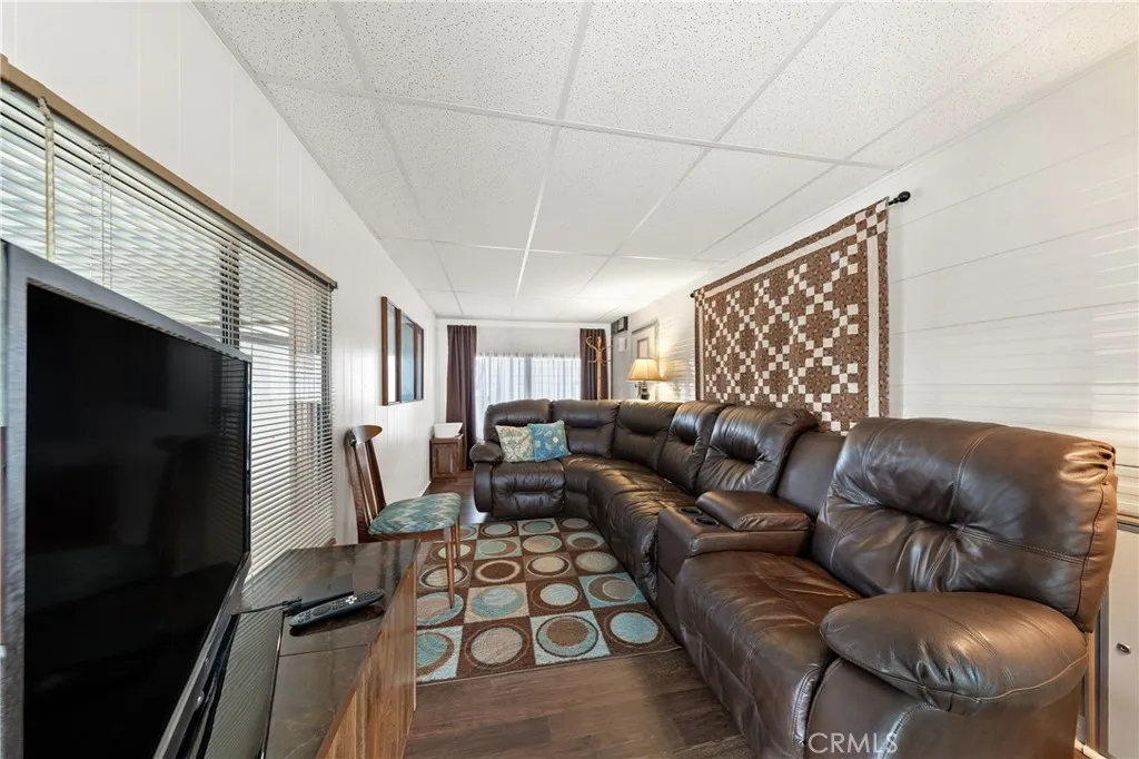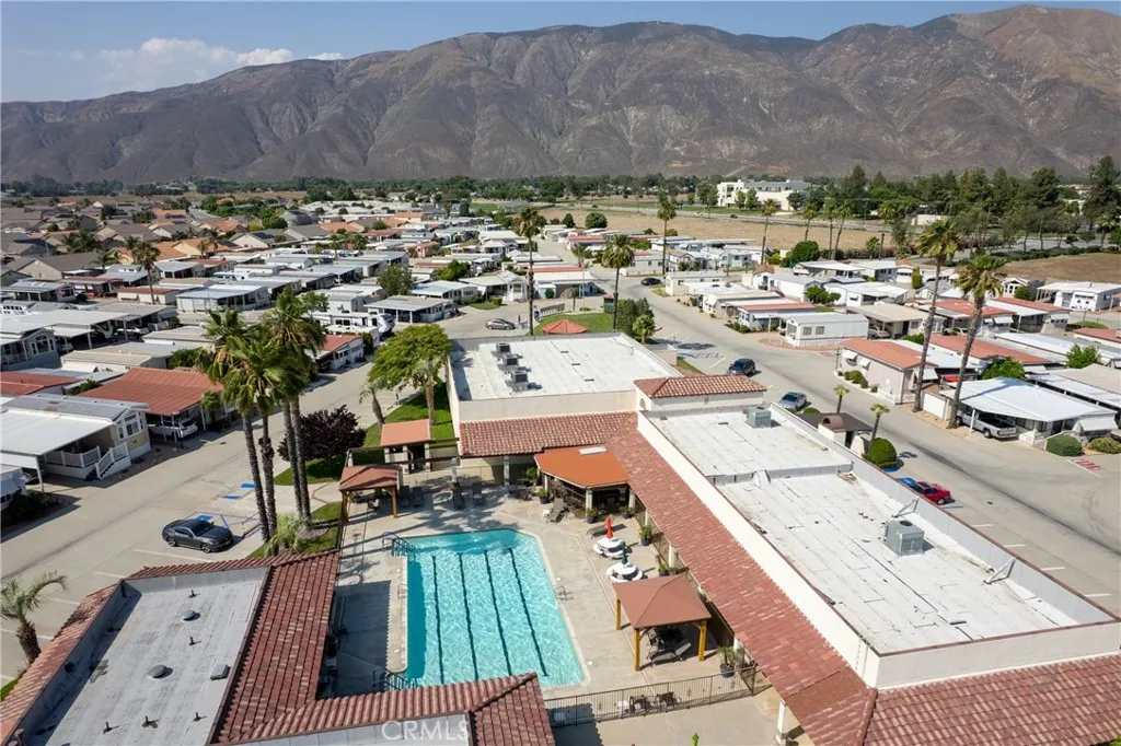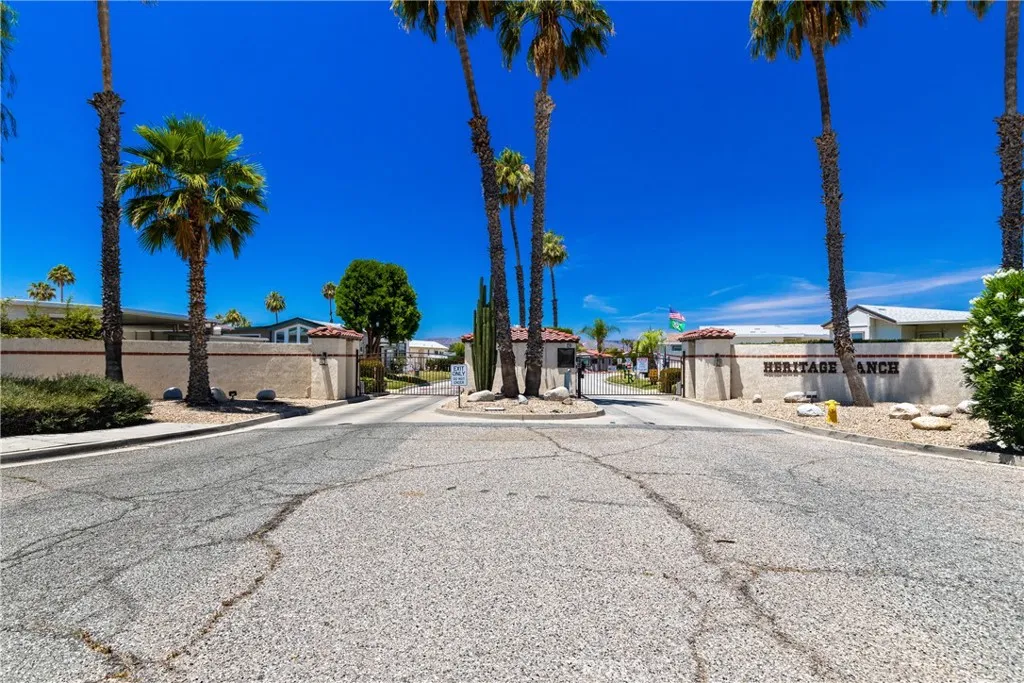 Truly exceptional park model home with bonus room in Heritage Ranch senior RV resort gated community. Gorgeous view of the mountains from the front room and covered patio deck. Step-saver kitchen has real wood finished cabinets, Formica counter tops, mini breakfast bar, electric stove, and refrigerator. Unique floor plan boasts a center bedroom with dual mirrored wardrobes and full bath (tub/shower combo), built in linen storage, and a exceptionally large vanity area for a park model. Insulated and permitted 8.5 x 17.5 bonus room accessible from the interior of home. Mini-split ductless heat and air plus a wall A/C. Newer Laminated wood flooring and custom honeycomb blinds throughout. Ceiling fans. Storage shed. Special feature: Outdoor heat lamp to keep guests cozy while enjoying a view of snow-capped mountains. HOA fee includes sewer, trash, water, basic cable and internet.