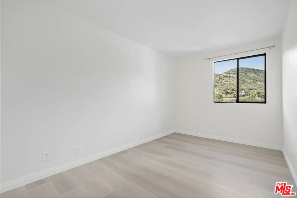 Enjoy serene views of the Santa Monica Mountains from this charming home in the El Nido neighborhood of Corral Canyon. The open floor plan upon entry is a great spot for gatherings with a spacious living room and adjoining kitchen. Upstairs you will find two bedrooms including the primary suite with a fireplace and a private deck to enjoy the colorful sunsets over the mountains. The lower level of the home consists of the third bedroom, bathroom, laundry, and a two car garage. Rounding out the features is a small flat and fenced backyard that is perfect for entertaining in the shade of the mature pine trees.