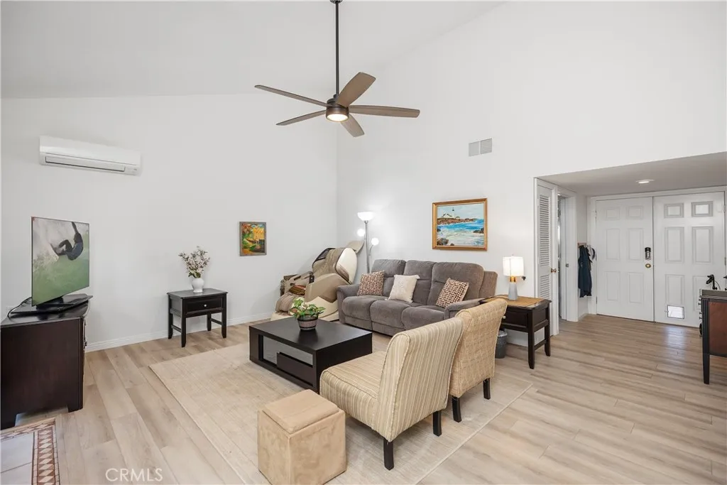The spacious primary suite, which has been extended by approximately 20 inches into the garage, features custom closets with lights and a remodeled master bath, a custom ceiling with a dual-sink vanity, and a tub and shower surround. Just off the primary bedroom is an additional bonus room perfect as an office, studio, hobby space, or quiet retreat. This room has a door to the garage. The guest bedroom is generous in size and is served by a bright hall bath with modern fixtures. In addition, two hall closets for great storage. Notable features include an energy-efficient ductless mini-split heating and cooling system with convenient remote control, dual-pane windows, smooth ceilings, and contemporary custom window coverings. The oversized two-car garage is a standout, featuring custom cabinetry, insulated walls, a finished ceiling, painted and stylish laminate wood flooring, wall-to-wall custom storage cabinets, work counters, a large-capacity Samsung washer and dryer, and a utility sink. You rarely find this type of garage to enjoy. All of this comes with the unmatched Laguna Woods Village lifestyle, including a 27 hole championship golf course and a nine hole executive course, tennis, pickleball, lawn bowling, two fitness centers, seven clubhouses, five swimming pools, an equestrian center, gardening opportunities, multiple arts and crafts studios, more than 200 clubs, free community bus service, and economical RV storage, all about six miles from beautiful Laguna Beach. Welcome home to resort-style living at its best! SEE 3D TOUR and SLIDE SHOW…