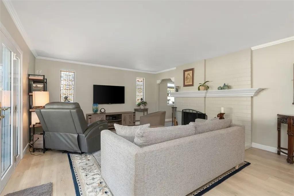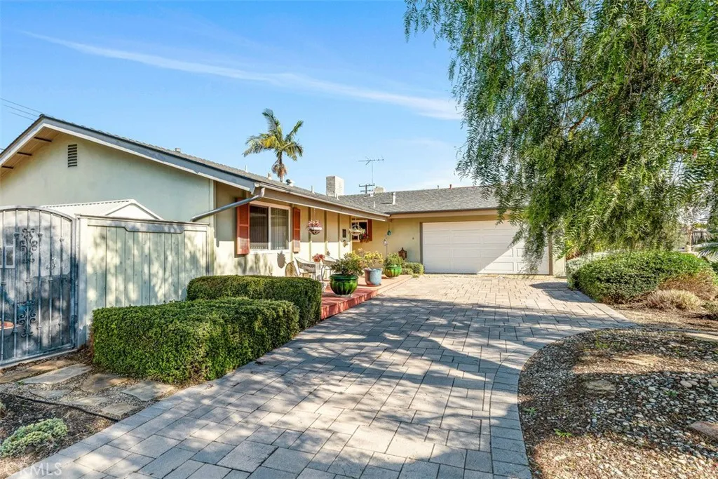 Prestigious beach home, situated on an over sized interior corner lot, while offering excellent curb appeal. It all begins with a renovated front yard, featuring a pavers driveway plus drought resistant landscaping with a fountain, a wooden deck and a picturesque mature tree. A new vinyl fence is also in the process of being installed shortly. As you approach the entry, you are welcomed by a Flagstone front porch and a custom front door with a pocket screen. Once inside, you are greeted by a spacious formal living room, featuring a gas or wood burning fireplace, stained glass windows and French doors leading to the rear patio. The kitchen has been updated in stages with granite counters, recessed lighting, updated cabinets installed in 2014 plus 5 year old stainless steel appliances, with the refrigerator and microwave included in the sale. There is a full sized dining room adjacent to the kitchen, showcasing a large garden window. The hall bathroom has been updated with a bathtub/shower with an acrylic surround plus glass enclosure, vanity with quartz counter and travertine flooring. All of the bedrooms are nice sized and there are mirrored wardrobe closets in the primary plus 2nd bedroom. The primary bathroom offers an acrylic lined shower, vanity with quartz counter plus a travertine tile floor. There are tons of bonus features including: crown moldings, textured ceilings, newer laminate flooring, dual pane windows, a brand new water heater, newer heating, air conditioning, ducting and insulation, all installed in 2021, copper plumbing, a roll-up garage door with a quiet opener and a 30 year roof with rain gutters, installed 11 years ago. Saving the best for last, the private rear yard features a heated in ground spa with an elegant brick surround, a large covered patio area with skylights, a natural gas built-in stainless steel BBQ, a large wrap around patio with a built-in gas firepit, French drains, artificial turf, nice landscaping and a garden shed. This lovely home is also walking distance to award winning schools, a park, golf, shopping, restaurants and is less than a 5 minute drive to the beach or the Bella Terra Mall!