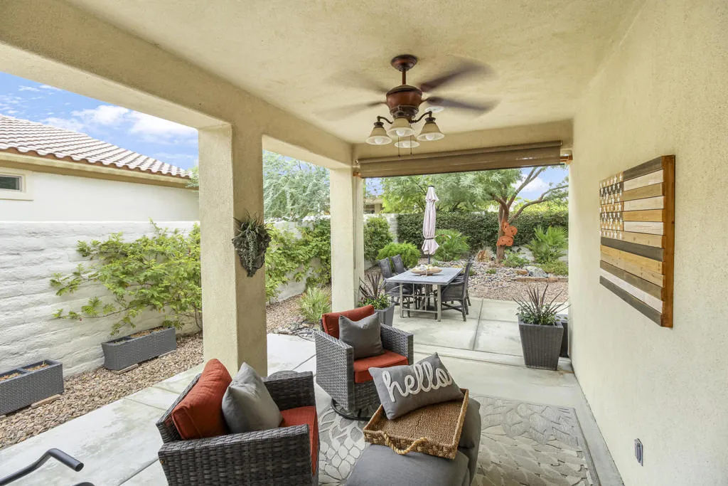 Perfectly furnished for you. Lease (3 months or longer. This Charming San Vincente Plan has everything you need to enjoy. Two Bedrooms, Two Baths with Den/Office and an Exceptional Backyard with Covered Patio and Open Air Space for Entertaining. A Spacious 2 Car Garage is attached with Storage Cabinets.