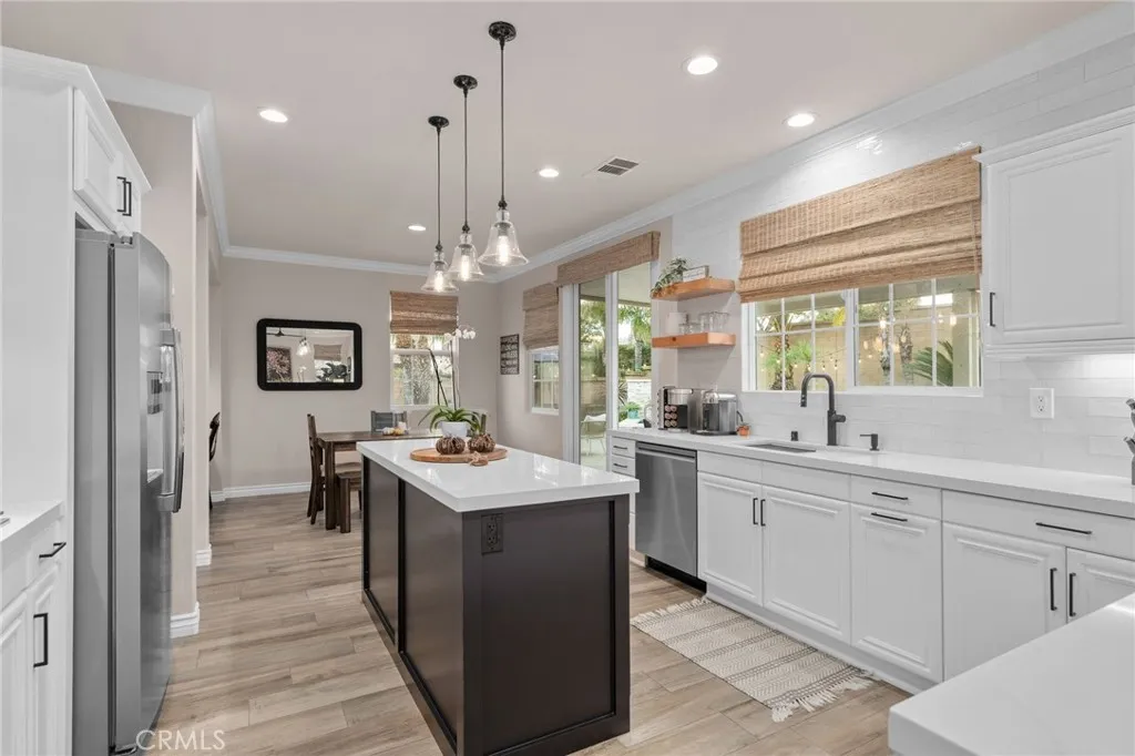 Inside, the home features an open-concept floor plan with abundant natural light and seamless indoor-outdoor flow. The remodeled kitchen and primary bathroom showcase high-end upgrades. The kitchen features quartz countertops, a custom tile backsplash, brand new appliances and lighting, and a versatile workstation sink. There are designer touches that elevate the space everywhere you look.