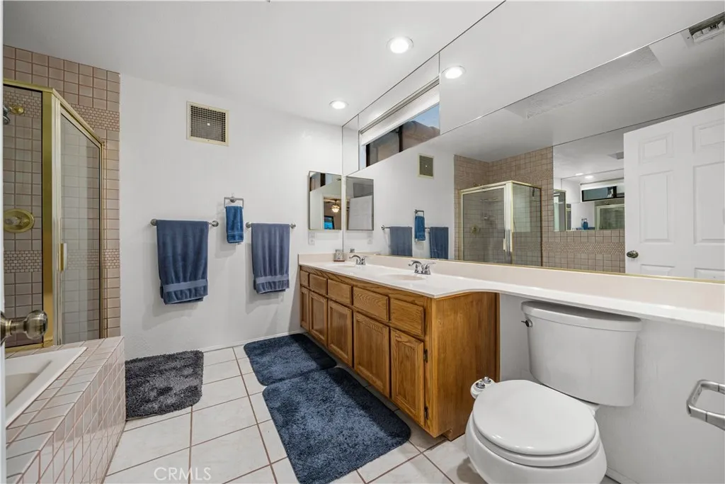 Welcome to this spacious two-story home offering approximately 2,641 square feet of comfortable living space, complete with a three-car garage and RV parking with dedicated power and concrete pad. This three-bedroom, two and one-half bath residence also includes a versatile bonus hobby room or office, ideal for work or creative projects. The open layout features a living room with cathedral ceilings, fireplace, along with a separate family room with fireplace and patio access. The kitchen includes solid hardwood cabinetry with pull-outs and reverse osmosis drinking water. The primary suite offers a walk-in closet, ceiling fan, dual sinks, soaking tub, separate shower, and private balcony showcasing beautiful mountain views. Additional comforts include ceiling fans in all bedrooms, ample storage throughout, and a well-appointed laundry room with utility sink and pet door. The backyard is an entertainer’s dream with heated pool and spa, Alumawood patio covers on both levels, Kool Deck surfacing, gas BBQ hookup, privacy hedges, lawn, rose garden, and a large storage shed. Energy efficiency shines with 6 KW owned solar panels, evaporative coolers on both levels and recent upgrades including newer HVAC systems, tile roof underlayment, pool pebble-tec finish, updated pool equipment, water heater, and refurbished evaporative coolers. A prime opportunity to enjoy comfort, space, and outdoor living in a well-maintained home.