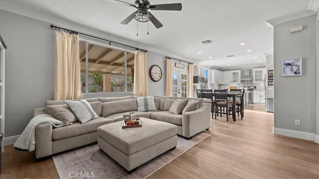 In the heart of Orangecrest, this thoughtfully upgraded residence offers over 2,600 square feet of elegant living on a quiet, tree-lined street in the 92508 zip. A custom pebble-tech pool, designer kitchen, and flexible layout create a polished blend of sophistication and everyday comfort.