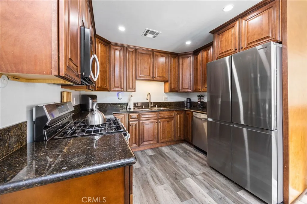 Charming single-story end-unit condo located in the City of Orange. This home features three roomy bedrooms, two bathrooms, and a spacious private patio. The bright, open layout includes laminate wood flooring throughout. The kitchen and bathrooms have been updated with granite countertops and modern finishes. Conveniently situated with quick access to the 55, 261, and 241 freeways, and just off Chapman Ave. Close to multiple shopping centers, restaurants, and schools. The community offers great amenities including a clubhouse, pool, spa, picnic area, and beautifully maintained landscaping. The HOA covers exterior upkeep and trash service. Additional highlights include a two-car garage, an assigned parking spot, guest parking, and a pet-friendly HOA that keeps the community looking its best.