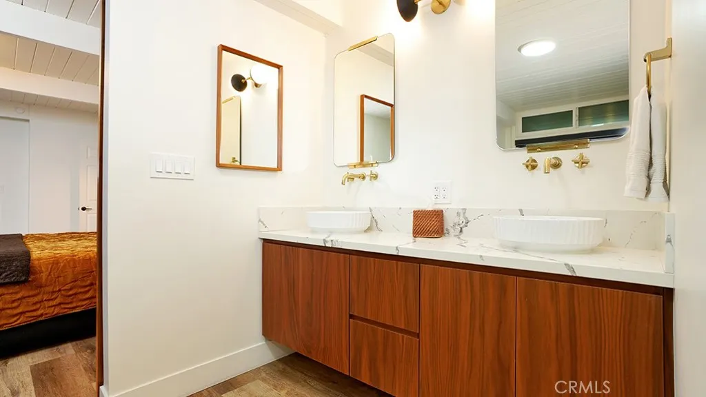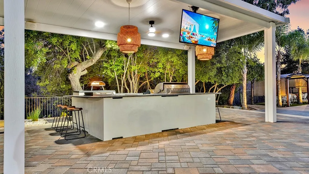 Nestled high in the exclusive hills where San Dimas meets Covina, this beautiful move-in ready home is a living work of art! Built in 1956 by legendary local artist Jim Maul (the creative force behind the iconic Ragged Point Inn, Covina Library, & San Dimas Civic Center), this single-story-mid-century masterpiece has been reborn w/over $550,000 in meticulous upgrades over the last two years. From the moment you drive through the new automatic gates & eight foot privacy walls onto your own private road you’ll be amazed at the views, beautiful trees, a wonderful flat lot plus an amazing home & backyard! Step inside to the soaring wood beams that float above an open floor plan drenched in golden Southern California light pouring through the floor to ceiling windows. Every window frames sweeping views of the resort-style backyard and rolling hills beyond. The heart of the home is the chef’s kitchen that belongs in magazines: custom built cabinetry, dramatic quartz waterfall island, dual farmhouse sinks, commercial pot filler & a 48-inch professional range. The primary suite is amazing – with a walk-in closet rivaling Rodeo Drive and a spa bathroom that makes you feel like you’re on a permanent vacation. Step outside and prepare to really fall in love. Over $200,000 transformed the backyard into a literal resort: Oversized 10 foot pool, 1,500 sq ft of pavers beneath a massive custom patio cover, a U-shaped outdoor kitchen loaded w/pro-grade Coyote appliances, 36-inch built in grill, power burner, 40-inch flat-top griddle, bar sink, even a dedicated pizza station and oven. Overhead is recessed lighting, marine grade speakers, a 50-inch outdoor TV, and remote controlled ceiling fan. Tucked poolside is another treat – a 400+ sq ft detached studio w/AC, plumbing & luxury fixtures. Currently a high-end hair salon it could convert to a private gym, pool cabana w/changing room, guest suite – all with its own separate entrance. Every major system is brand new: roofing, a 400 amp electrical panel, complete repipe, tankless water heater, ductless zone controlled HVAC system (only cools/heats the rooms you want) + fresh interior paint. Welcome home – where mid-century soul meets over-the-top modern luxury. When you see this home in person, you’ll understand why some properties are simply priceless. This is resort living, every single day! Combine this with the 1.28 acre adjacent lot (a raw canvas) for your own “legacy estate”. See MLS #CV25264739 for inspiration & ideas!