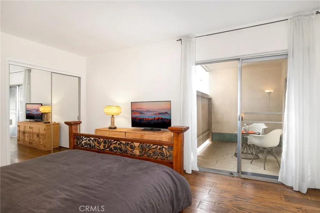 Proud to present this beautifully updated 1 bedroom, 1.5 bath West Hollywood condo offering 966 sq ft of comfortable living in one of the area’s most desirable tree-lined streets. Classic hardwood floors flow throughout, leading you into a bright and spacious living room with sliding glass doors that open to a private, enclosed patio overlooking the sparkling pool—perfect for morning coffee or evening relaxation. The dining area includes a versatile extension that can serve as an office, den, or creative flex space. The modern galley kitchen features quartz countertops, stainless steel appliances, sleek cabinetry, and extended counter space ideal for cooking and entertaining. A convenient half bathroom for guests is a rare perk, while the spacious bedroom also offers direct patio access, two closets—including a generous walk-in—and a recently remodeled ensuite bathroom boasting quartz counters, contemporary tilework, and a glass-enclosed shower. Additional highlights include central heat and air with a newer HVAC system, a Smart Ecobee thermostat, and the option to install in-unit ventless laundry with HOA approval. HOA dues include water, trash, earthquake insurance, high-speed internet, and premium cable. All this in a prime location moments from Trader Joe’s, Gelson’s, Whole Foods, and the endless dining, shopping, and entertainment options along Melrose Ave and Santa Monica Blvd. A fantastic opportunity to enjoy stylish living in the heart of West Hollywood.