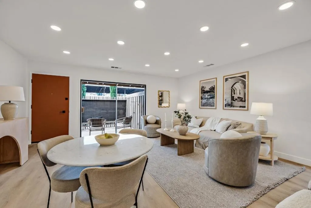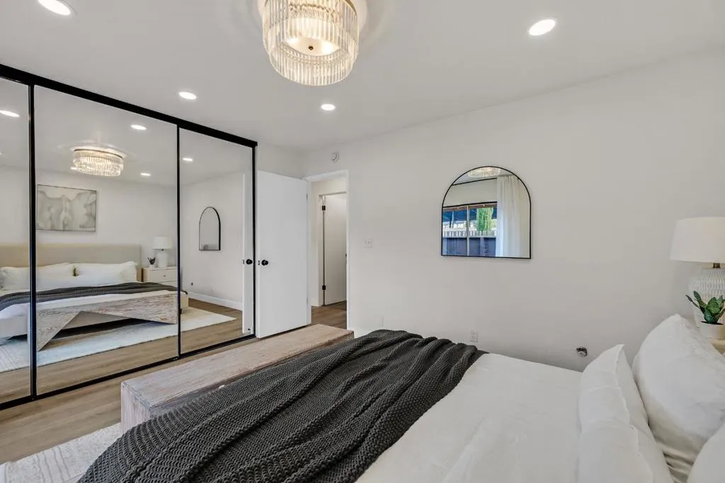 Beautifully updated one story end unit in Roundtree complex. Great location and close approximity to all tech companies. You don’t want to miss this bautifully updated throughtout end unit. Kitchen has been transformed to a chef Kitchen with big Island, and display glass cabinets for your entertainments. all new recessed lighting, new paint, new bathroom new closet doors in the bedrooms, new floors, new stainless steel refrigerator, new cabinets, new vanity with dual sink, new tile floors & shower, A/C, New water heater, New light fixures, living and bedroom opens to the patio, furnace is approximately 8-10 years old. the list goes on and on. Prime Silicon Valley location with quick access to Costco, Whole Foods, Apple, Google, LinkedIn, and Nvidia, plus Hwy 101, Lawrence & Central Expwys, and Caltrain. This one is a must see. window covering is part of staging. buyer to verify schools