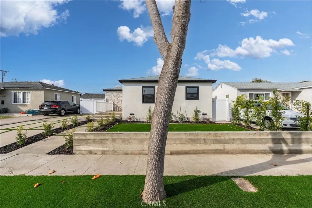 Discover this beautifully remodeled 3-bedroom, 1-bath completely move-in ready and brimming with modern upgrades. Inside, you’ll find stunning engineered hardwood floors flowing throughout an open, light-filled layout. The heart of the home is the custom kitchen, featuring bespoke cabinetry, a KitchenAid stove, and matching dishwasher. Just down the hallway, a brand-new stackable washer and dryer make laundry a breeze, while a high-efficiency heater and A/C unit ensure year-round comfort. All plumbing and electrical systems have been fully upgraded, so you can enjoy peace of mind in every corner. or step outside to your private oasis. Both the front and back yards are thoughtfully landscaped with low-maintenance artificial turf, and the backyard boasts its own putting green—perfect for weekend fun or honing your short game. LED accent lighting illuminates the outdoor spaces after dark, creating an inviting atmosphere for entertaining. A brand-new driveway with a 2 car detached garage with EV charging capability. This is a must see home.