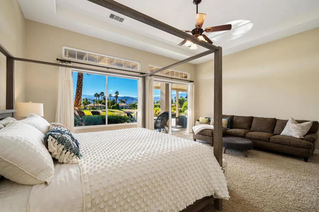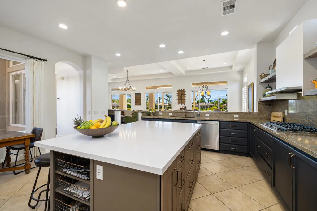 South-Facing Golf Course Retreat on the 16th Fairway – Remodeled with Casita & Resort Amenities. Located on the 16th fairway of the Gary Player Course, this beautifully remodeled, south-facing home captures sweeping golf course and mountain views from one of Mira Vista’s most desirable settings. Designed for both luxury and comfort, the residence offers 4 bedrooms, including a private detached casita, plus a dedicated office with a Murphy bed for added flexibility. Inside, soaring high ceilings, wood tile flooring, and an inviting fireplace create a warm and sophisticated atmosphere. The spacious kitchen has been upgraded with granite and quartz countertops, blending style and functionality for everyday living and entertaining. The main living area also features an elegant wet bar, perfect for hosting. The primary bedroom serves as a serene retreat with beautiful natural light and generous space. Guests will appreciate the privacy of the separate casita, ideal for extended stays. Step into your own resort-style backyard featuring a refreshing pool and spa, expansive covered patio, built-in grill, relaxing lounge areas, and a custom putting green overlooking the fairway–an entertainer’s dream. Residents of Mira Vista enjoy top-tier amenities, including tennis and pickleball courts, a community pool and spa, and 24-hour guard-gated security. Low HOAs that include cable and internet add to the exceptional value. This home offers the perfect blend of elevated living, stunning views, and an unmatched desert lifestyle. Your Mira Vista golf retreat awaits.