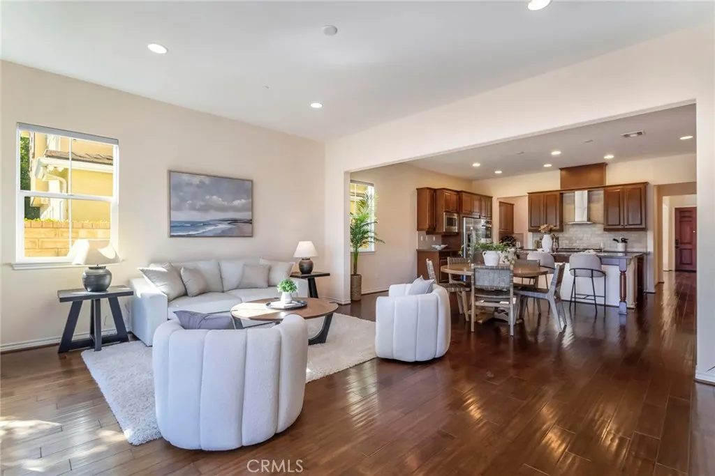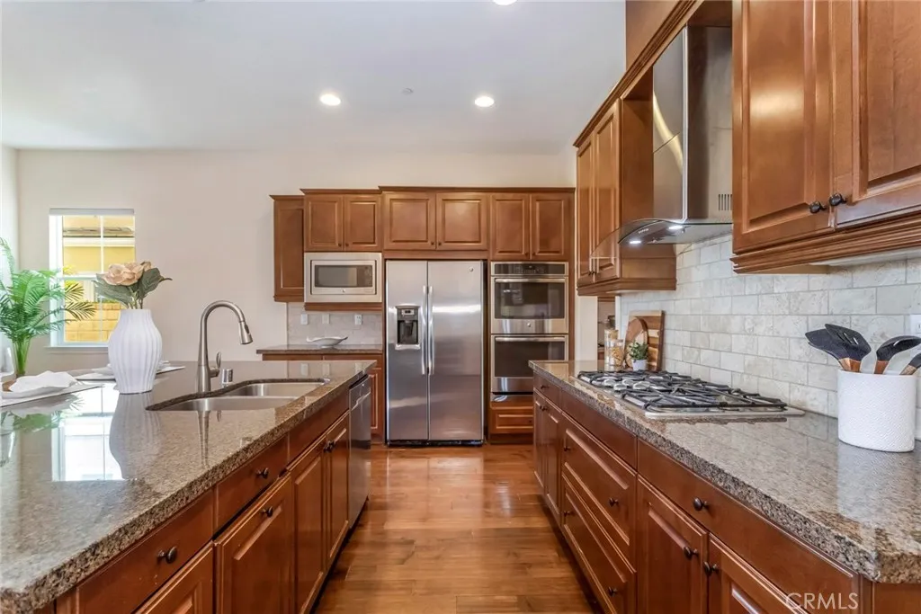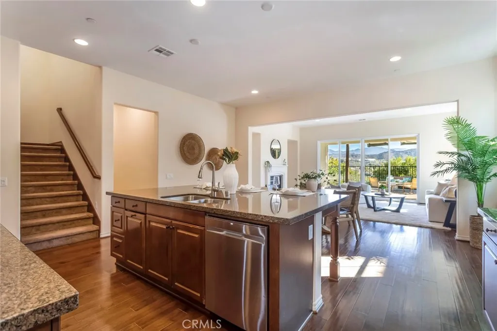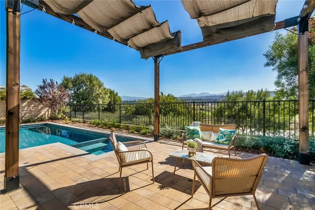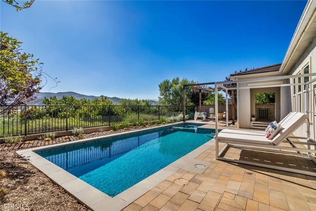 Welcome to this exceptional gated Executive POOL Home, perfectly situated on a beautiful cul-de-sac in River Village with sweeping VIEWS. Spanning nearly 4,000 square feet, this expansive residence offers five bedrooms, five bathrooms, formal living and dining areas, a large family room, and a generously sized loft/game room. Upon entry, you’re welcomed by wood flooring in warm tones, inviting paint selections, and lots of windows filling the space with natural light. The home boasts beautifully designed interior finishes that create a refined and inviting atmosphere. Nearly every room captures stunning views of the Santa Clarita Valley. The chef’s kitchen is thoughtfully designed with premium stainless steel appliances, a huge center island with seating for three, butler’s pantry with wine fridge, walk in pantry, ample storage, granite counters and a natural stone subway backsplash. The formal living room opens to the versatile area that could be a formal dining area or open living space. The spacious family room features a stunning fireplace with sliding doors leading to the lovely covered with unobstructed views…perfect for entertaining. A downstairs bedroom includes a spacious closet and private bath… perfect for guests or a home office. The luxurious (downstairs) primary suite offers expansive views of the surrounding landscape, an enormous walk-in closet, and a spa-style ensuite bath with a soaking tub, walk-in shower, dual vanities, and a dedicated makeup area. The upper level includes a versatile loft and three additional bedrooms, one with a private bath and two share the coordinating hall bath. Step outside to your resort inspired backyard featuring captivating views, a modern pool and spa with sleek design, pergola and low maintenance landscaping! Additional highlights include SOLAR, spacious laundry room with tons of storage and a three car attached garage. Residents enjoy access to resort style HOA amenities including pool, spa, clubhouse, playgrounds, dog park, and gorgeous common areas. Conveniently located near award-winning schools, paseos, shopping, restaurants and major freeways.