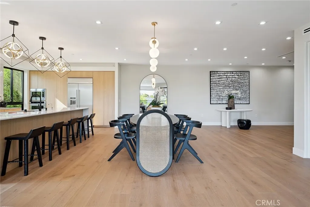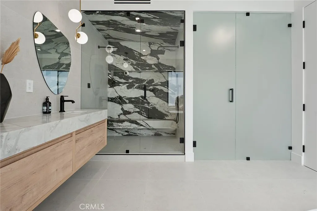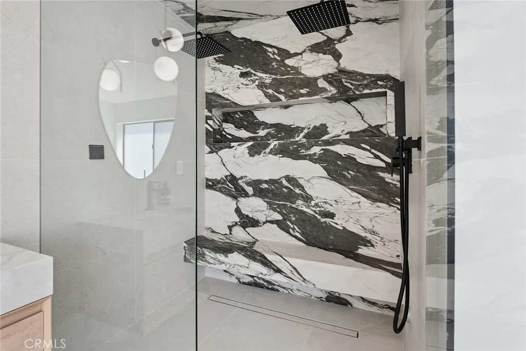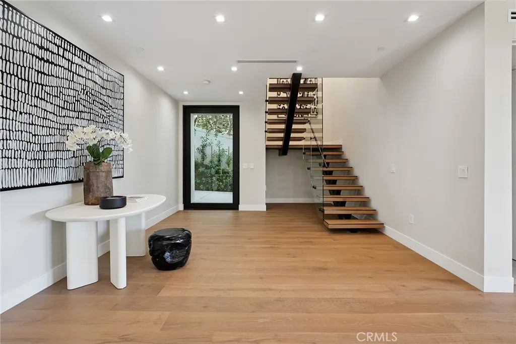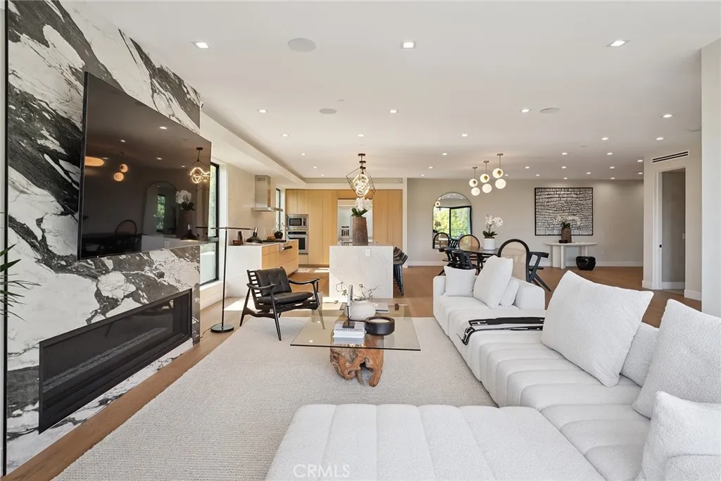 Gated modern estate newly constructed in 2024 with just completed brand new pool & spa located South of the Boulevard with Valley, mountain, & city light views! Privately tucked away and hidden from the street, the property is situated down a long gated driveway with pedestrian access and flanked by tall growth hedging. Oversized parking can accommodate 10 cars plus there is direct access to an extra deep 540 SF 2-car garage. The interiors boast meticulous craftsmanship, designer finishes, and almost every room looks out to gorgeous views. A glass pivot entry door opens to a grand foyer where you’ll find a completely open floor plan filled with natural light from sweeping glass doors that open to the vistas beyond. The chef’s gourmet kitchen boasts massive center island with breakfast bar seating, stainless gourmet appliances, custom soft close cabinetry with quartz counters, separate wine fridge, and great pantry space. The kitchen opens directly to all living spaces including the formal dining room, the spacious family room with stone fireplace, and separate separate den – all rooms highlighted by glass pocket doors & sliders that open to a sprawling wraparound balcony deck with seating area that overlooks the amazing Valley & mountain views. A lower level movie theater has a full bathroom, access to the exterior, and can alternatively be used as a guest suite. Ascend a stunning floating glass and iron staircase to the upper level where you’ll find four well appointed bedrooms including the luxurious primary suite featuring stone fireplace, pocket doors that open to a balcony deck overlooking the gorgeous views, expansive walk-in closet, and sumptuous en-suite bathroom with custom floating vanity with dual sinks, designer tiling, walk-in steam shower with multiple shower heads, soaking tub, and separate toilet room. The three additional bedrooms have walk-in closets and access to their own bathrooms. Two of the rooms have large sliders that open to the backyard and the other opens to a large balcony deck overlooking the views. The resort styled backyard features brand new pool and spa, large wraparound patio for lounging and outdoor dining, BBQ center, and grass lawns with lush landscaping. Desirably located adjacent to dining & shopping at the Calabasas Commons, Topanga Canyon shops/eateries, Westfield Topanga Mall/Village, Warner Center, hiking trails & minutes to Malibu. Also available for sale for $3,595,000.