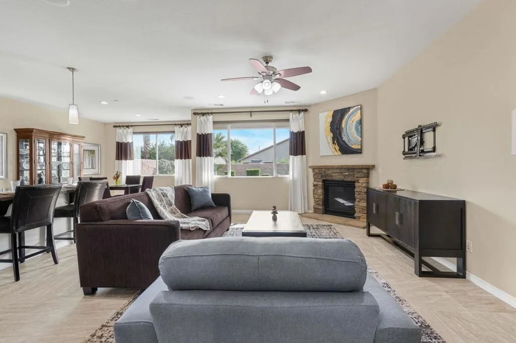 Welcome to 84317 Falco Ct., a beautifully maintained former model home offering 2,284 sq. ft. of elegant living space in the sought-after Aliante gated community of Indio. This residence features 4 bedrooms, 3 bathrooms and office/den providing a perfect blend of comfort and functionality for modern living. Attached is a stunning apartment sized casita with its own private entrance, kitchenette with full-size refrigerator, washer, dryer, spacious bedroom with large walk-in closet and a full-size bathroom making it ideal for guests, extended family, or as additional income as a rental (information provided upon request).Step inside to discover a bright and open floor plan thoughtfully designed for contemporary living. The inviting living area is anchored by a cozy fireplace, creating the perfect setting for relaxing evenings or casual gatherings. The stylish kitchen outfitted with granite countertops, grand island, pantry, abundant cabinetry with pull-out shelves adds a functional layout that makes meal preparation and entertaining a pleasure. The serene primary suite offers a private retreat with an en-suite bathroom with dual sinks, shower, bathtub and large walk-in closet with built-in organizers. Garage can house 2 cars plus ample storage and/or golf cart. Additionally included is a tankless water heater, 220 Volt Plug and an A/C mini split to maintain temperature control for tinkering around the garage or perhaps enjoying working out with your own personal gym equipment.Outdoor living is seamless thanks to one of the largest lots in the community 9,148 sq. ft. surrounded by low-maintenance landscaping. Whether you envision it as a haven for children and pets, a space for outdoor dining or perhaps to visualize your own private oasis would only add to a versatile extension of this exceptional home.