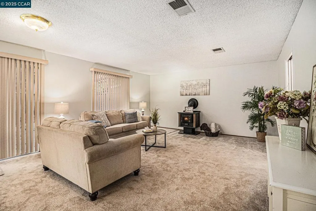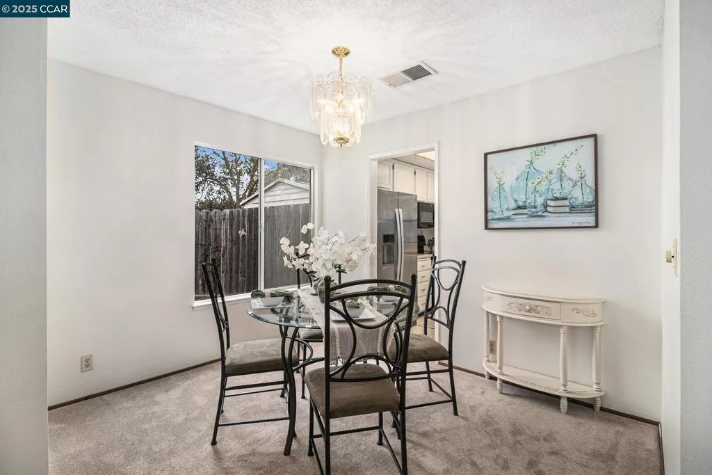 Great court location in Village Oaks! Formal living room with vaulted ceiling and wood burning fireplace plus formal dining room. Spacious family room with wood stove and slider to rear yard. Kitchen with breakfast bar, pantry, garden window overlooking the backyard, new built-in microwave and stainless steel sink, refinished countertops and freshly painted cabinets. Primary bedroom with vaulted ceiling and large closet. New carpet and freshly painted throughout. Inside laundry. HUGE backyard with lots of potential and possibilities! Central heat and air conditioning. Community pool and tennis with low HOA dues. Conveniently located to shopping, award winning Morello Park Elementary, Highways 4 and 680. Just minutes away from vibrant downtown Martinez where you will find restaurants, farmer’s market, shopping, coffee houses, breweries, the Martinez Marina, walking trails and so much more!