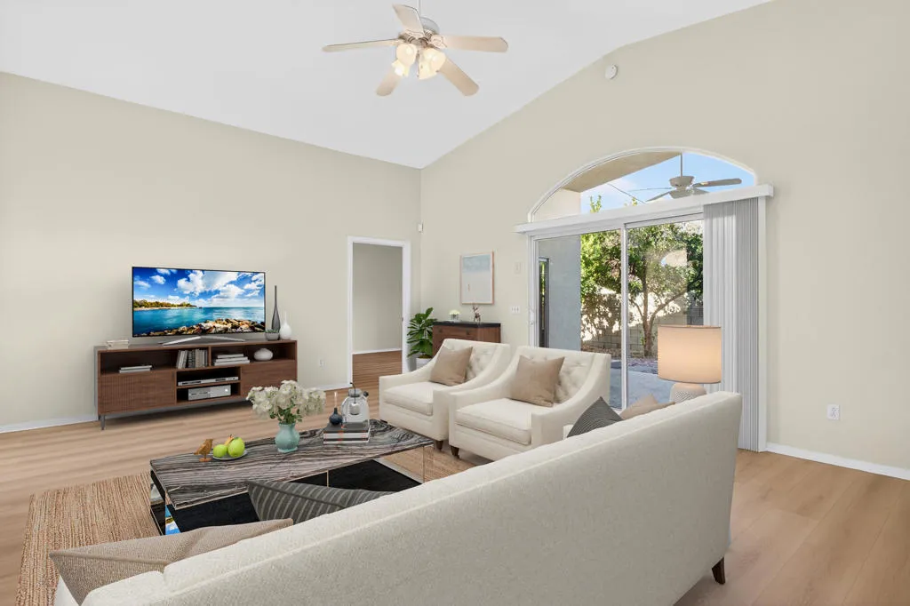 Step into the effortless lifestyle you deserve with this stunning, completely move-in ready 3-bedroom, 2-bath home. Every detail has been meticulously updated for you, offering the peace of mind of a new build without the wait. Imagine walking into a space where everything is fresh and new! The recent, extensive upgrades include a full complement of new appliances–refrigerator, dishwasher, range, microwave, washer, and dryer–all included for your convenience. Experience the beauty of new luxury vinyl plank (LVP) flooring, fresh interior paint throughout, and elegant new window treatments that elevate every room. Even the finer details have been addressed with new toilets and sleek mirrored closet doors. Your private outdoor retreat is designed for relaxation and enjoyment, offering true resort-style living. Relax in the sparkling pool and spa, now featuring a brand new heater for luxurious, year-round enjoyment! The low-maintenance landscaping in both the front and back means you spend your weekends lounging by the water, not doing yard work. Inside, this home is designed for modern comfort and seamless flow. The bright, vaulted cieilings, open-concept main area features a spacious kitchen with ample counter space and prep areas, flowing effortlessly into the family room, dining area, and formal living room–perfect for entertaining or daily family gatherings. A bonus room (not included in the 1,900 sqft) with a closet offers fantastic flexibility, presenting the perfect potential for a 4th bedroom, a dedicated home office, or a private gym. The private Primary Suite is a true sanctuary, set opposite the guest bedrooms for maximum privacy. It features a spacious walk-in closet, dual vanities, and a luxurious, oversized walk-in shower. If you are seeking a perfectly updated, low-maintenance home with an ideal layout for both gathering and personal space, your search is over. Don’t wait to discover the ease and elegance of this turnkey property. Schedule your private showing today and prepare to say: ”Welcome Home!”