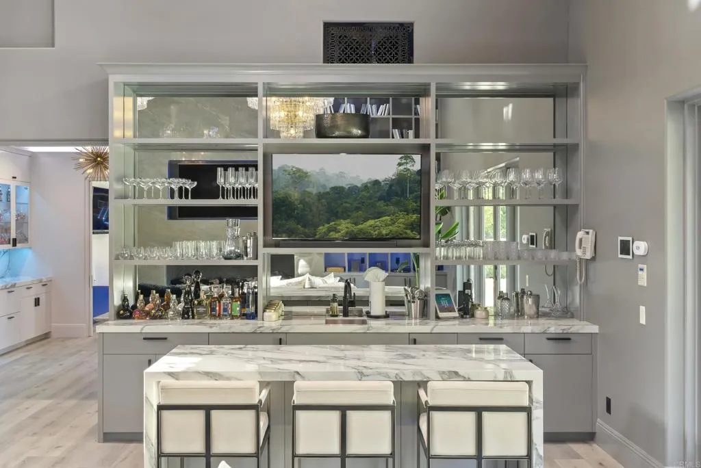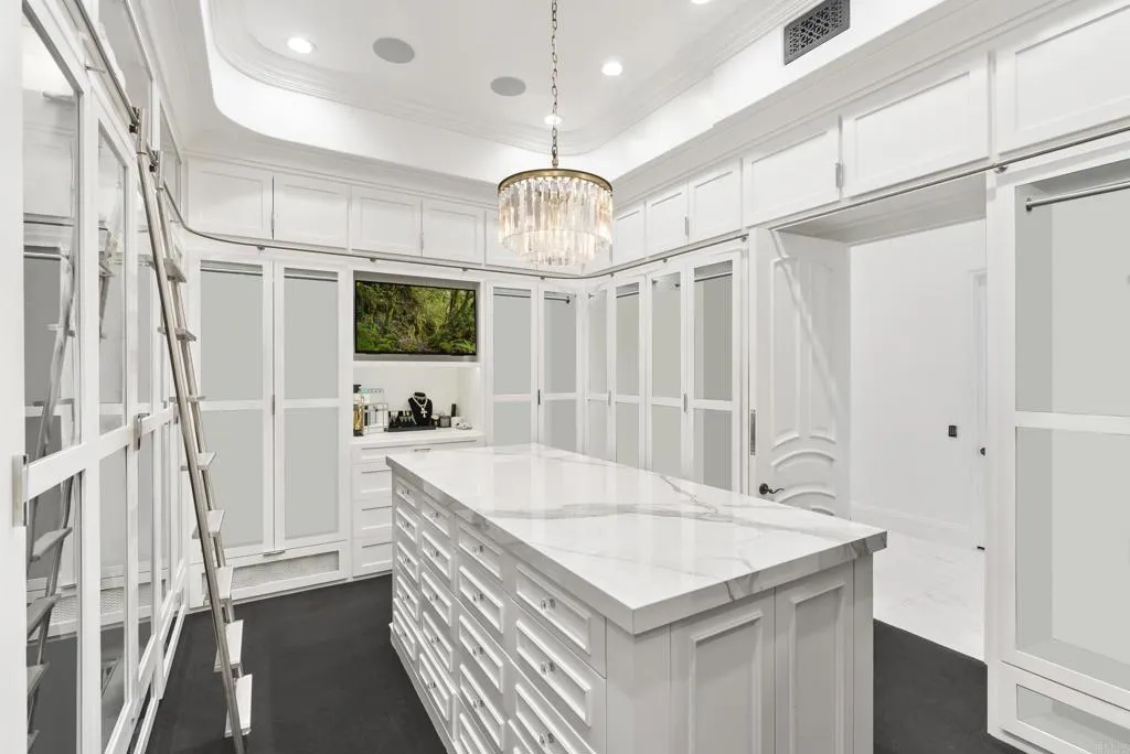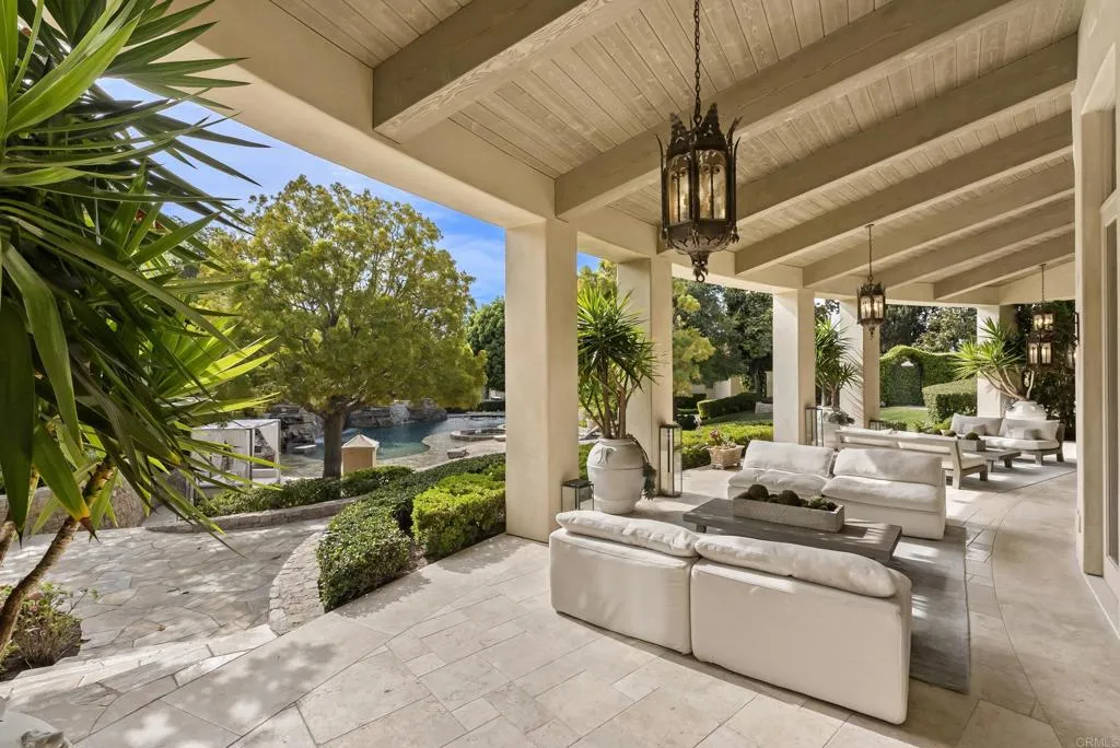 Welcome to Southern California’s crown jewel – Amor Estate is a rare and resplendent private estate of unrivaled grandeur. Step into a realm of timeless elegance and uncompromising luxury at one of Southern California’s most distinguished and elusive private estates. This extraordinary sanctuary, nestled within the prestigious enclave of Del Rayo Estates, is a masterpiece of architectural brilliance and resort-style indulgence, where every detail whispers sophistication and every moment is steeped in serenity. Beyond its stately gates, a sweeping palm-lined drive and a grand motor court evoke a cinematic sense of arrival, setting the tone for the magnificence that awaits at Amor Estate. Spanning nearly 30,000 square feet of exquisitely crafted living space, this palatial compound is a celebration of scale, style, and substance. The main residence features seven lavish ensuite bedrooms, each a private retreat of comfort and refinement, while a two-bedroom guest house offers a secluded haven for extended family or staff. Every inch of the estate has been meticulously curated to reflect a harmonious blend of classic opulence and modern flair—an interior designer’s dream, where Restoration Hardware aesthetics meet bespoke craftsmanship. A dramatic double-door entrance reveals a breathtaking open-air atrium, anchored by a sweeping dual staircase that ascends like a sculpture. Inside, soaring coffered ceilings, expansive living areas, and a seamless flow between formal and informal spaces create an ambiance of effortless grandeur setting the tone for intimate gatherings or lavish entertaining. The great room, bathed in natural light, commands attention with its voluminous scale and architectural finesse. The chef’s kitchen is a culinary masterpiece, featuring dual center islands, custom cabinetry, top-tier appliances, and a sunlit breakfast nook overlooking the tranquil grounds. The main level Primary Suite is a sanctuary of indulgence with multiple sitting areas, a cozy fireplace, and a spa-inspired bath retreat boasting dual vanities, a steam shower, and a soaking tub. A boutique-style walk-in closet with glass doors, a private glam room perfect for pampering and self-care, and an elegant lounge and office space complete this personal oasis. Resort-caliber amenities elevate Amor Estate to an unparalleled level of luxury and include a state-of-the-art home theatre for immersive cinematic experiences, a club-style game room and billiards lounge with full bar, a professional recording studio for creative expression, a 3,800 sq. ft world-class fitness center with sauna, cold plunge, and spa facilities, a spectacular pool and spa with waterslide, outdoor pizza oven, and expansive lounging decks, a multi-sport court and lush athletic field ideal for year-round training and to keep that WIN mentality front and center. Southern California’s favorable climate will allow you to bask in the beauty of the numerous outdoor gathering spaces, covered loggias, fireplaces and fire pits for an alfresco entertaining experience. The 3,300 sq. ft Family Fun Pavilion is a destination unto itself—an expansive retreat featuring multiple lounge and media areas, a vibrant arcade, board game room, and children’s play zone, all crafted for unforgettable moments and joyful connection. For the automotive enthusiast, a 10-car garage and motor court with space for 12+ additional vehicles offer the perfect stage for showcasing a curated collection in style. Despite its serene seclusion, Amor Estate is mere moments from world-class golf, fine dining, elite schools, and exclusive resorts, yet it feels worlds away in its own private paradise. 6853 Rancho Valencia Rd is more than a home, Amor Estate is a generational property, a private resort, and an unprecedented lifestyle experience. This is the pinnacle of luxury. This is a once-in-a-lifetime opportunity.