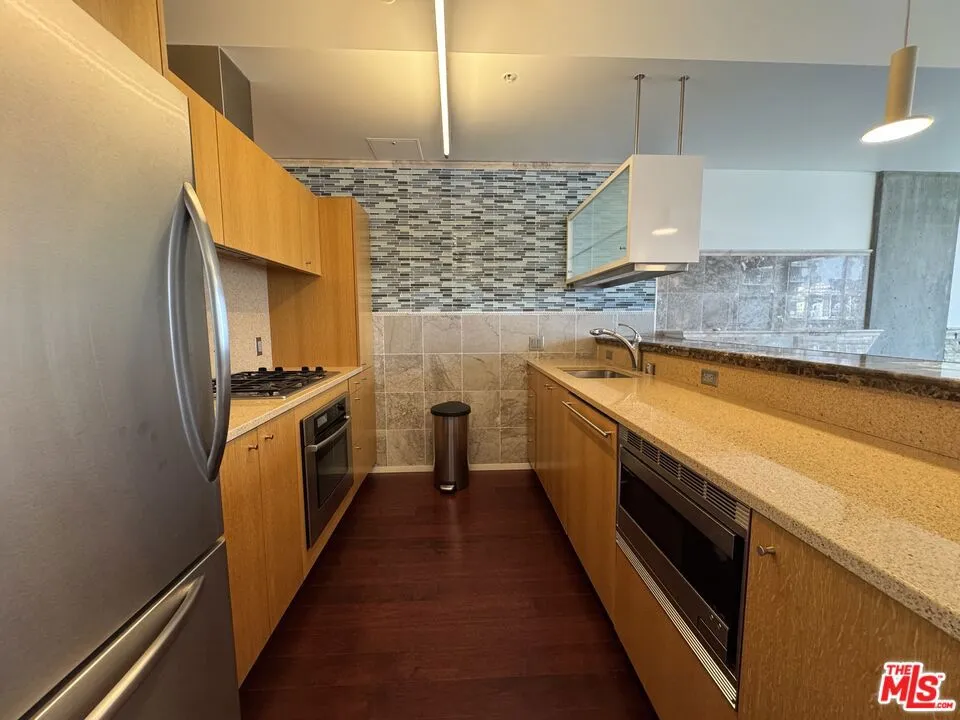Welcome to your urban oasis at 1155 S Grand Avenue, EVO! This stunning 1-bedroom, 1-bathroom condo is located in the heart of Downtown Los Angeles, offering breathtaking views of the iconic Crypto.com Arena and the vibrant cityscape. Inside you’ll discover a modern living space adorned with hardwood flooring creating the perfect ambiance for relaxing evenings. The open-concept layout seamlessly connects the living area to a gourmet kitchen, complete with built-in stainless steel appliances, custom cabinetry, and elegant countertops. The spacious bedroom features ample natural light and a generous closet, while the contemporary bathroom boasts high-end fixtures and finishes, ensuring a spa-like experience every day. Residents of EVO enjoy access to a wealth of amenities, including a rooftop resort pool & spa, lounge, fitness center, BBQ grills, sundeck, and 24-hour concierge service. With its prime location, you’ll be just moments away from world-class dining, entertainment, and shopping, making this condo the ultimate urban retreat. Don’t miss your chance to live in one of DTLA’s most sought-after buildings.