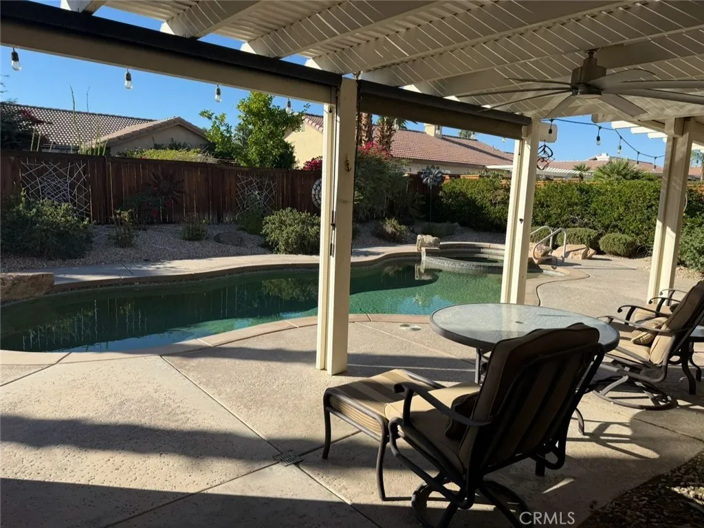 Cozy, bright, with high ceilings 3 beds 2 baths retreat house is located in one of the quiet and clean areas of sunny Palm Desert. Very well maintained and kept house has lots to offer: from wide opening double doors to an airy and spacious formal living room which opens through the sliding doors to the oasis backyard with sparkling pool and warm spa, covered sitting area, beautiful landscape with gorgeous palm trees, cactus trees and flower beds. Spacious kitchen with vaulted ceilings opens up to the dining area and cozy family room with a fireplace. Master bedroom has an ensuite bathroom with a walk-in closet and separate area for the toilet. You also have an access to the backyard through a sliding door from the MB. There are 2 specious and bright bedrooms that share a full bathroom and a separate dining room for special occasions. Separate laundry area off of the 2car neat and clean garage. Fully furnished and equipped with all the appliances, TVs and patio furniture. Ready to move-in, just bring your clothes with you and make it your home!