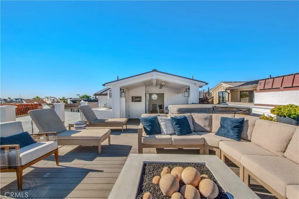 Thoughtfully designed and beautifully furnished, the home is fully equipped for a relaxing family retreat. The main level features an entertainer’s kitchen with high-end appliances, generous prep space, and seamless indoor–outdoor flow to the oversized front patio, ideal for morning coffee or sunset cocktails on the water. Upstairs, you’ll find three spacious bedrooms, including a large bunk room perfect for kids or additional guests. The highlight of the home is the expansive rooftop deck—complete with a fire pit, spa, covered dining area, lounge seating, and panoramic views of the bay and island.