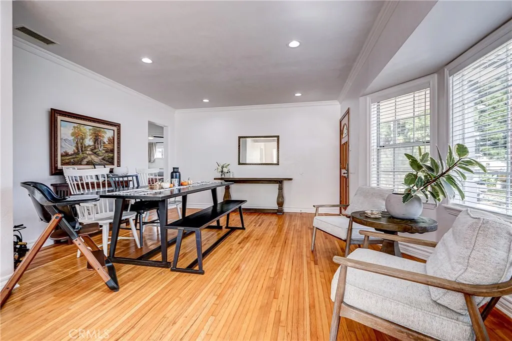 This charming property is flooded with natural light and offers an inviting living space with a functional floorplan. Step inside to the spacious foyer welcoming you with gleaming hardwood floors and recessed lighting. Currently being used as a kids play area and formal dining – personalize this space to make it your own! The upgraded kitchen offers an open concept with quartz countertops, stainless appliances, and ample cabinetry throughout. The centerpiece of the home, the oversized kitchen island, offers a convenient breakfast bar and seamlessly connects the kitchen and living room for easy entertaining. Primary bedroom offers hardwood floors, built-in closet organizer, and a generous size bathroom with a dual sink vanity and jacuzzi tub. Huge backyard with endless potential. Timed sprinklers keep the grass maintained with ease, the large patio offers a built-in bbq island, and the garden beds yield seasonal vegetables. The space is perfect for entertaining, relaxing evenings, or family gatherings.