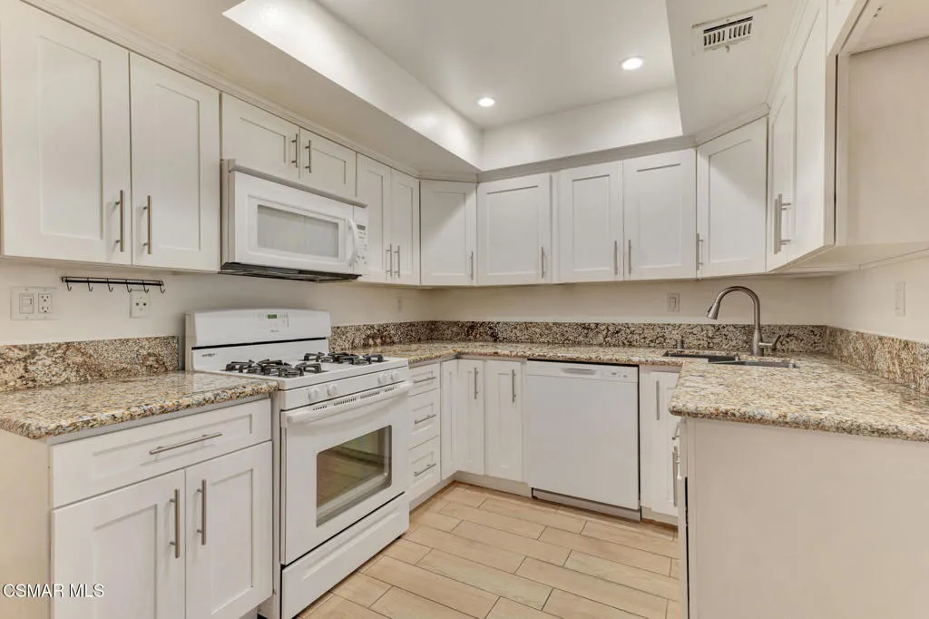 Beautifully upgraded single-story end-unit condo for lease. Located in a very private setting at the rear of the complex. This home features 2 spacious en-suite bedrooms, an inviting living area with a cozy fireplace, and an enclosed private patio. The renovated kitchen offers newer soft-close cabinetry, newer stove and microwave, plus a washer and dryer are included. Both bathrooms feature elegant marble showers. Additional highlights include central air and heat, a tankless water heater, and a 2-car attached garage. Community amenities include a sparkling pool and spa. Water and trash are paid by the HOA. Close to excellent schools, shopping, and restaurants.