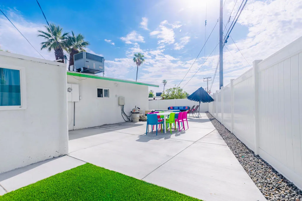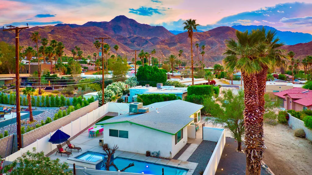 Discover this charming three-bedroom, two-bath 1960s bungalow located in the heart of Cathedral City Cove. A true mid-century modern gem with only two owners, this home offers classic design paired with thoughtful updates throughout. Centrally positioned, it places you just minutes from Rancho Mirage, Palm Springs, and the stunning natural beauty of the Santa Rosa Mountains. The Cove remains one of the most desirable neighborhoods in the valley, known for its peaceful setting, gorgeous views, and inviting community feel. The home features a spacious and versatile living area that opens directly to a private backyard oasis, creating an ideal space for both everyday living and entertaining. The exterior has been enhanced with a resort-style pool and spa, a six-foot white vinyl fence and front-facing block wall, a modern MCM entry gate, expanded concrete driveway, updated pathways and patio, pinpoint landscape lighting, refreshed landscaping in both the front and back, and complete stucco repair with a full exterior repaint.Interior improvements include an updated electrical panel and electrical system, new windows throughout, an upgraded back door, ceiling fans, modernized plumbing for the bathtub and shower, added external outlets and a security camera system, a newer refrigerator, and an A/C unit installed in 2018. Don’t miss your chance to own this beautifully maintained mid-century treasure. Welcome to the Cove–come and experience this exceptional home today.