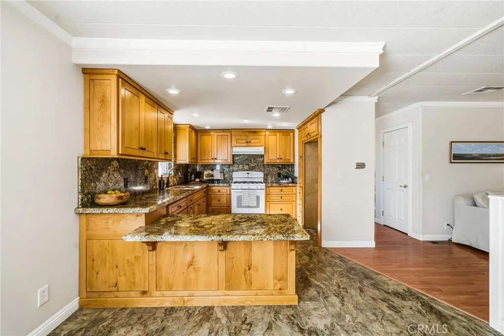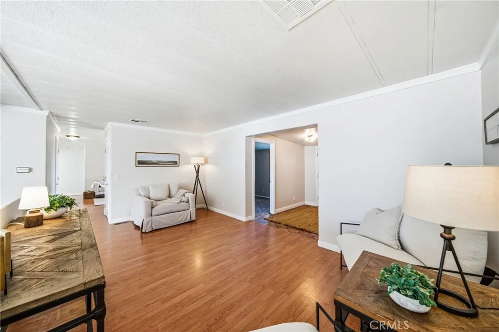 The home itself is warm and comfortable with 1,536 sq ft, 5 bedrooms and 2 bathrooms (two bedrooms non-permitted), updated flooring, crown molding, a remodeled kitchen, and bathrooms with granite countertops. It sits on a permanent foundation and offers a welcoming interior that feels like home the moment you walk in.