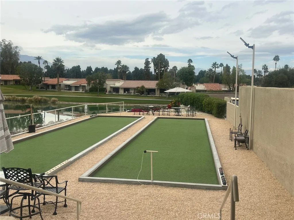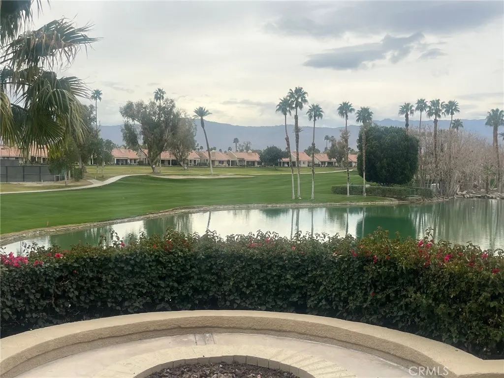 Situated on a premium lot, this residence offers one of the most desirable vantage points in the community. The expansive and oversized rear patio provides an ideal setting for outdoor dining and lounging, with unobstructed views of the 18th green framed by dramatic mountain and lake backdrops. Tinted sliders enhance comfort and energy efficiency while preserving the stunning scenery. This highly sought-after floor plan is offered turnkey/furnished, providing immediate enjoyment and convenience. Recent updates include a new A/C system, new split A/C, and a new water heater, ensuring peace of mind and modern comfort. The property is located within a guard-gated community, offering security and a true resort-style lifestyle. Residents enjoy close proximity to the clubhouse, which features dining, cocktails, and scheduled entertainment. The community pool and spa are less than a one-minute walk away. Golf, pickleball, tennis, and bocce ball are all accessible within the resort. Beyond the grounds, the location is ideal for desert living—near world-class dining, shopping, and major event venues such as the BNP Paribas Open and Coachella/Stagecoach festivals. Short-term rental potential with prior history adds an attractive investment component. Downtown Palm Springs is approximately 14 miles away, offering additional dining, culture, and entertainment. This property seamlessly blends an exceptional setting, desirable amenities, and a refined resort lifestyle—an opportunity not to be missed.