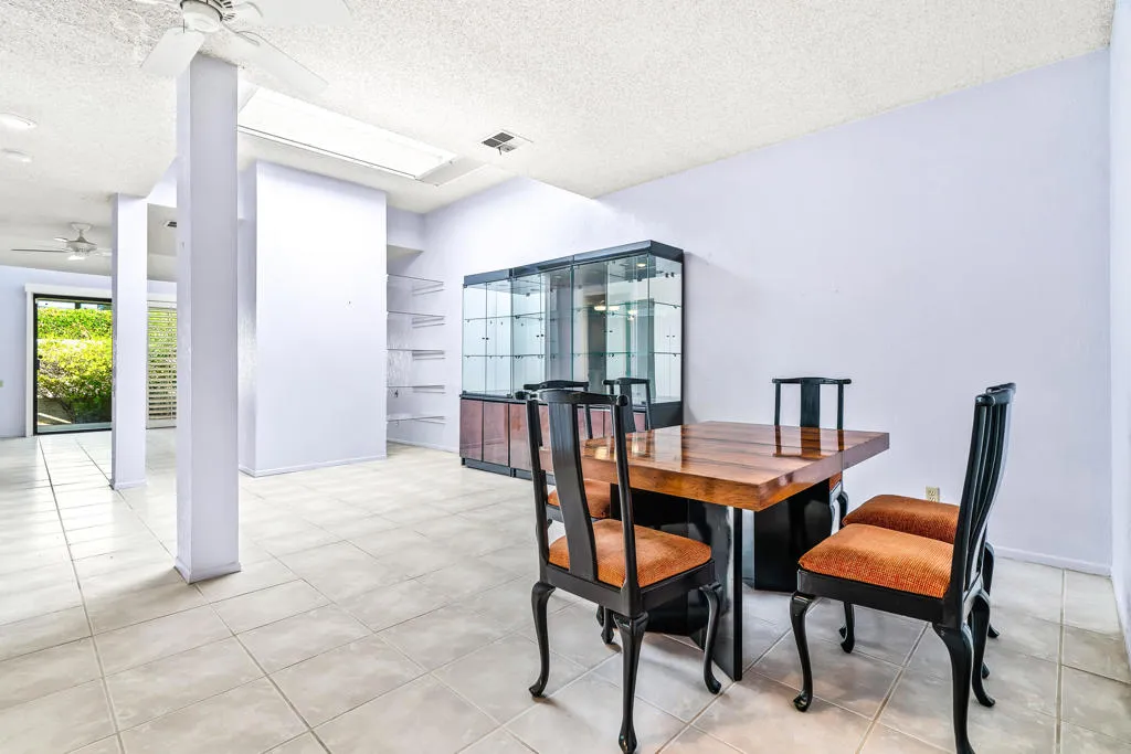 A great investment opportunity and a chance to make this home your own–ideal for investors or owner-occupants seeking value, scale, and upside. This is a remodel project offering strong fundamentals, dramatic volume, and the ability to add value through thoughtful updates; with much of the interior still in original condition, the residence invites a fresh interpretation tailored to modern living. Ideally located just a few blocks from downtown Palm Springs and moments from restaurants, shopping, nightlife, galleries, and hiking. Located in Palm Regency, a boutique enclave of just 84 homes, this single-level 2BD/2BA residence offers approximately 1,595 sq. ft. of impressive space, oversized rooms, and preserved original architectural details that provide an excellent foundation for renovation. Much of the interior remains original, presenting a true blank canvas for buyers ready to personalize and modernize to their own taste. Vaulted ceilings rise above dual living areas anchored by the community’s signature fireplace, creating an airy sense of scale rarely found at this price point. The main living room flows into an expansive dining area that also functions beautifully as a second living space, enhanced by skylights and a wet bar. Large neutral tile flooring throughout reinforces the clean, open layout. Outdoor living is private, with a large enclosed patio offering ample space for lounging, dining, and enjoying warm desert evenings–ideal for creating your own secluded outdoor retreat. The primary suite is thoughtfully separated from the guest bedroom and features dual vanities and direct patio access. A standout feature is the private attached single-car garage, complemented by an additional reserved carport parking space, providing rare convenience this close to downtown. The residence enjoys a quiet interior location just steps from one of the community’s two pools.Palm Regency is known for its spacious layouts, private patios, attached garages, and resort-style amenities, including two pools and spas, tennis courts, wide greenbelts, and a clubhouse framed by mountain views. Positioned directly across from the new luxury Living Out community and moments from Alice B., John Henry’s, Sherman’s Delicatessen, and The Farm, with easy access to Palm Canyon Drive shopping, the Palm Springs Art Museum, and vibrant nightlife. An excellent opportunity to add value in a prime central Palm Springs location.