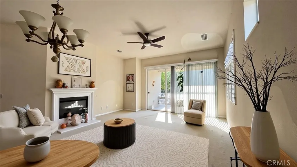 Beautifully Upgraded Model in Solera Del Webb 55+ Gated Community Welcome to this stunning, move-in ready home nestled within the master-planned, gated Solera Del Webb 55+ community in Beaumont. Thoughtfully upgraded and impeccably maintained, this residence offers the perfect blend of comfort, style, and active adult living. Step inside to discover an open-concept floor plan designed for effortless entertaining and everyday enjoyment. The spacious great room flows seamlessly into the dining area and kitchen, all enhanced by , recessed lighting, and soaring 10-foot ceilings. A cozy fireplace anchors the family room, while large windows throughout the home in natural light. The covered lanai patio invites you to relax or host guests while embracing the indoor-outdoor California lifestyle. The expansive primary suite features a luxurious bathroom, oversized walk-in closet, and serene privacy. A well-appointed guest bedroom and bath are located at the front of the home, along with a versatile double-door bonus room—ideal for a home office, craft space, or media retreat. Additional upgrades include: • Tile flooring in the entry, bathrooms, and laundry room • Warm, neutral interior paint for easy decorating • Spacious kitchen with ample cabinetry and natural flow Prime Location with Small-Town Charm and Big-Time Convenience Located in the growing city of Beaumont, this home offers quick access to local grocery stores, dining, and shopping—all with a welcoming small-town feel. You’re just minutes from the Cabazon Outlets, Palm Springs, Redlands, and the charming mountain towns of Oak Glen and Cherry Valley, perfect for hiking and seasonal fruit picking. Resort-Style Amenities for Active Living Solera Del Webb offers an exceptional array of amenities to enrich your lifestyle: • Golf course • Tennis, pickleball, and bocce ball courts • Pool and jacuzzi spa • Fitness center and walking trails • Clubhouse with fireplace lounge, billiards room, catering kitchen, and library • Outdoor BBQ and picnic areas • A vibrant community center hosting clubs, events, and social activities Don’t miss your chance to experience this beautiful home and the incredible lifestyle that comes with it. Schedule your private tour today