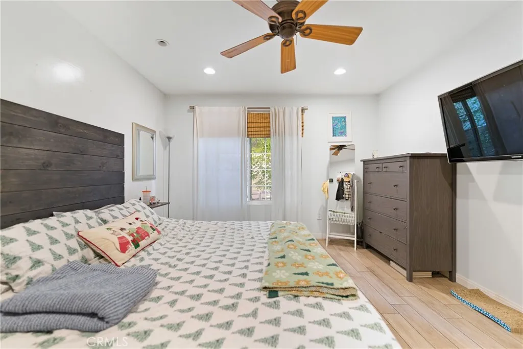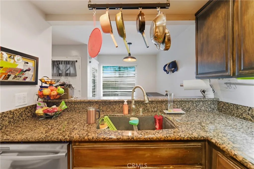 This charming single-level, ground-floor end unit offers 1 bedroom and 1 bathroom and is filled with natural light throughout. The inviting living area features wood-grain tile flooring, a cozy gas fireplace, and large sliding glass doors that open to an oversized private patio, perfectly framed by mature trees and complemented by the calming sound of the community’s bubbling water feature. The kitchen is equipped with stainless steel appliances, and the property includes a full-size, personal stackable washer and dryer conveniently located next to the bathroom. Additional highlights include a 2-car tandem garage situated in close proximity to the unit for added convenience.