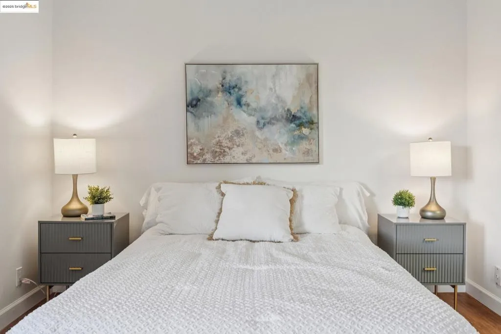 Welcome to 1207 Melville Sq #417, a beautifully updated 2BD/2BA condo with 1,022 sq.ft. in the desirable Northshore Bayfront Community at Marina Bay, equiped with an elevator, offering comfort and convenience. The kitchen was remodeled in 2022 with marble countertops and stainless-steel appliances. The in-unit laundry area features LG ThinQ washer and dryer. Both bathrooms are tastefully updated, one with a stall shower and the other with a jetted bathtub. The home features wood flooring throughout, and one bedroom includes a Murphy bed for flexible space use. The living room showcases a wood-burning fireplace with a unique artist-designed screen and opens to a private balcony with built-in storage. Enjoy the waterfront lifestyle just steps from scenic trails and the weekly farmers market. Easy access to I-580/80, BART, and the SF Ferry, connecting you to San Francisco, Oakland, Berkeley, and Marin. Experience stylish, modern living by the Bay!