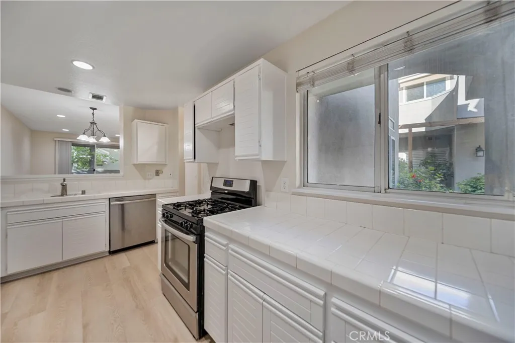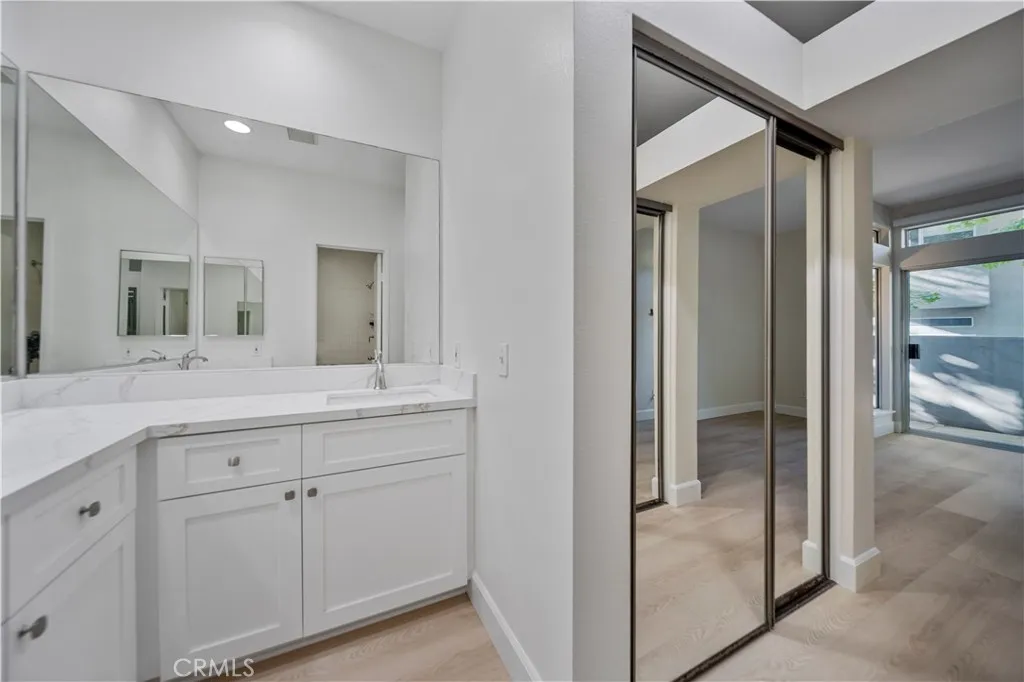 Enjoy the simplicity of modern living with this fantastic, move-in ready 2 bedroom, 2 bathroom condominium, perfectly situated on the first floor with no stairs in the secure, gated Arbor Park community in the heart of Valencia. The entire condo was just painted, and it features brand new wood type flooring throughout, giving the home a fresh, modern feel. The spacious floor plan includes two comfortable, well-sized bedrooms. The primary suite is a private retreat, featuring a full ensuite bathroom with a new dual vanity, a generous walk-in closet, and a dedicated door that grants direct access to the private outside patio. A practical laundry space off the kitchen accommodates your washer and dryer. Parking is truly effortless, the property features an attached one-car garage that has direct access to this unit, an additional covered carport, and plenty of visitor parking for your guests. This condo places you at the center of everything Valencia has to offer, you’ll be just moments away from the area’s best shops and restaurants, as well as essential services including markets, cafes, banks, and pharmacies. The location is ideal for students and faculty, with close proximity to College of the Canyons, Cal Arts, local schools, and several local parks, with convenient access to major hospitals also nearby. The meticulously maintained Arbor Park community provides residents with great amenities, including a refreshing pool and spa, all secured within the private, gated setting for your peace of mind. Don’t miss the opportunity to own this low-maintenance, perfectly situated ground-floor home in a prime Valencia location!