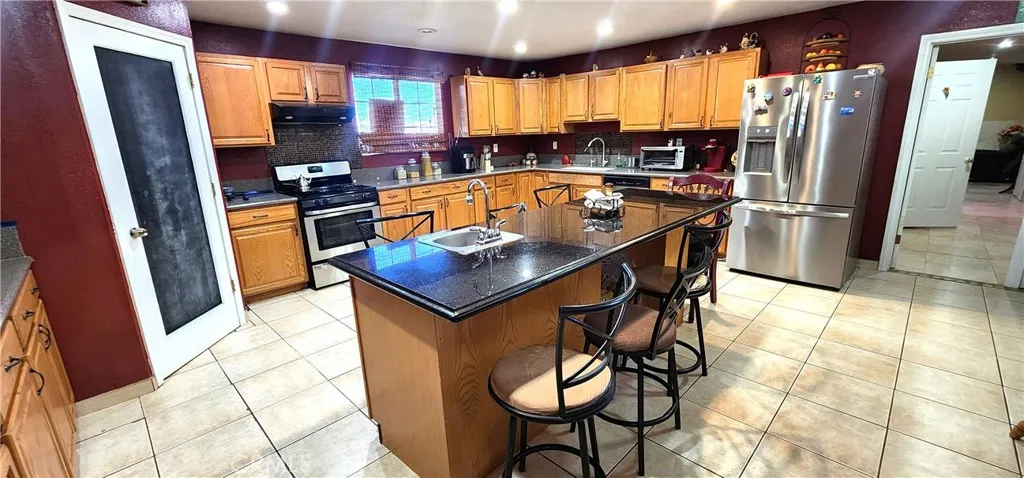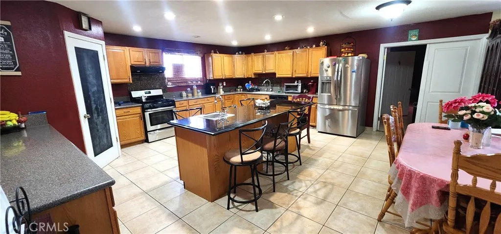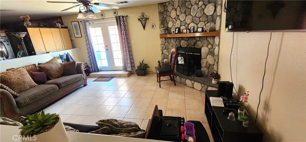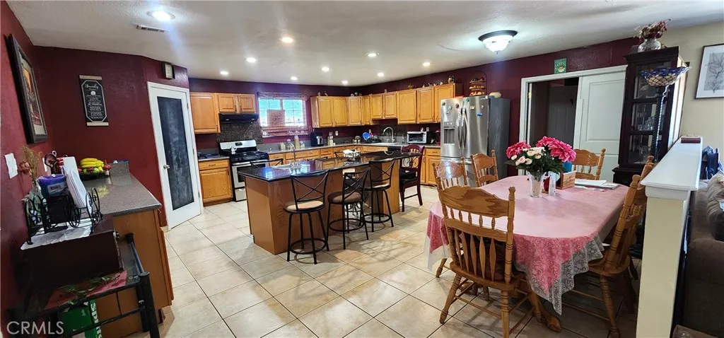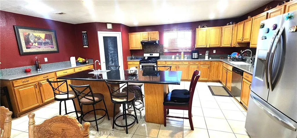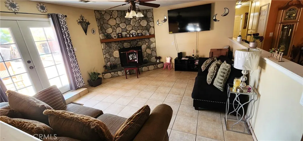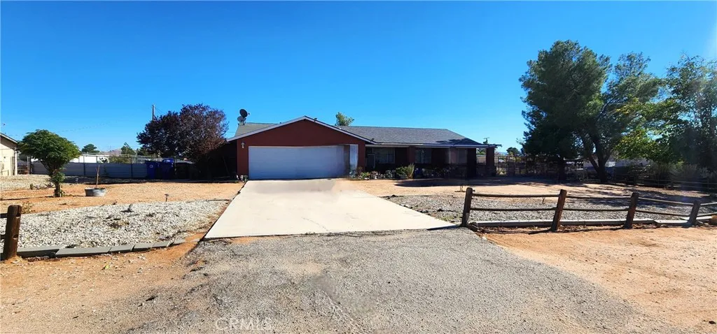 This beautiful property offers 2,608 sq. ft. of living space, featuring 4 bedrooms and 3 bathrooms, including two master suites, a large living room, and a family room with a fireplace. The open and spacious kitchen offers plenty of cabinets and a convenient pantry. One of the master bedrooms is very large, featuring a double vanity, a jacuzzi-style tub, and a walk-in shower. The laundry room is located inside the house, right next to the garage for added convenience. The lot is huge, providing ample space for your RV, extra vehicles, or outdoor toys, and it also includes horse stables — perfect for your animals or horses. A unique, comfortable, ready for you to enjoy!
