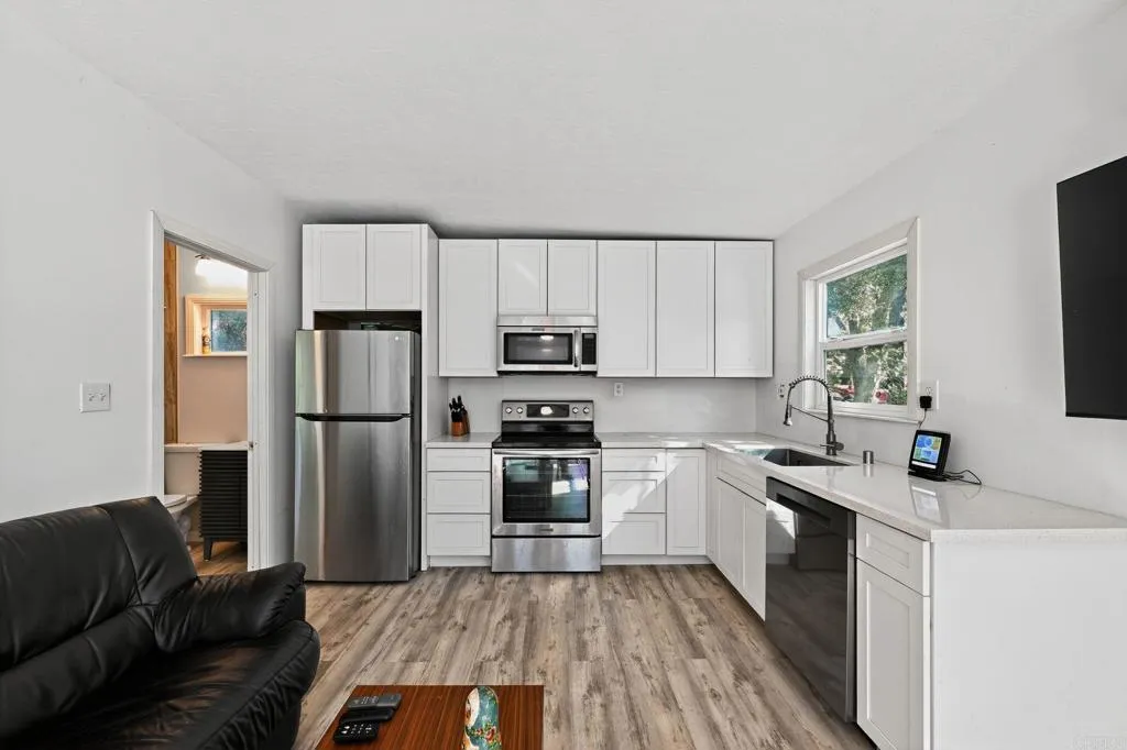 Special opportunity for a small turn key home in Pine Valley on a large lot! . Great investment potential with very useable, gated and fully-fenced property. New, permitted septic system and plenty of room for parking, RV or equipment storage. This home is set up with solar panels, battery storage and is generator ready! This area has city water and plenty of internet access. Escape the everyday and discover your completely turn-key mountain sanctuary in the highly sought-after community less than an hour to San Diego Airport. This remodeled, one-of-a-kind home is perfectly nestled on a serene .32-acre lot, offering peace, privacy, and the gentle sound of a seasonal creek. Perfect for a 1st time buyer. The upper level is a ready to move in 1-bedroom, 1-bathroom residence featuring a charming kitchen, comfortable living area, and a private deck—the ideal spot for savoring your morning coffee amidst the crisp mountain air. Downstairs presents a world of possibilities! This flexible lower level has laundry and is set up for bonus living area or workshop. With easy access to hiking, horse trails, and the vast Cleveland National Forest, this home offers an inviting small-town lifestyle and an abundance of adventure right outside your door. A true Pine Valley must-see!