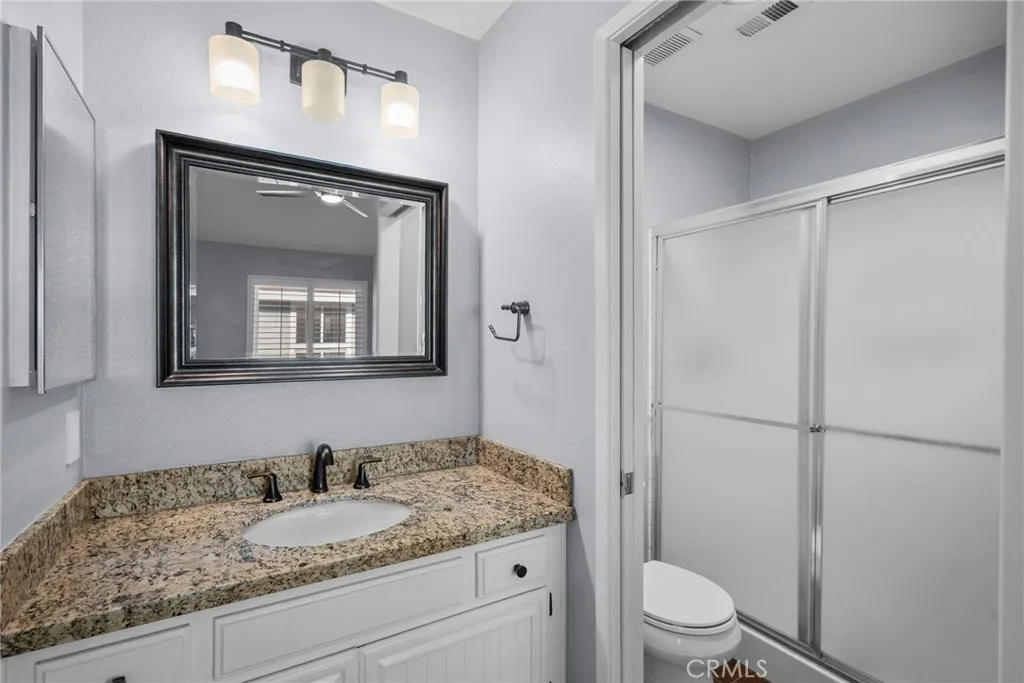 Welcome home to one of the most desirable locations in the community! An exceptional upper end unit offering rare privacy, abundant natural light, and an expansive layout that lives more like a single-family residence than a condo. This stunning home features 3 bedrooms plus a spacious loft, perfect for a home office, media lounge, or guest retreat. Step inside to discover a beautifully remodeled kitchen appointed with granite countertops, brand new LG smart stainless steel appliances, and modern LED recessed lighting. Both bathrooms have been tastefully upgraded with newer granite surfaces, updated plumbing and lighting fixtures. Soaring vaulted ceilings over 15 feet high create an airy and open atmosphere, complemented by NEW dual-pane windows, custom plantation shutters, and a NEW sliding glass door that enhance comfort, efficiency, and timeless style. Additional upgrades include a newer HVAC system, newer water heater, and fresh custom interior paint in some areas. Everyday convenience continues with private in-unit laundry featuring a NEW full-size MAYTAG washer and dryer. Enjoy peaceful mornings and relaxing evenings on your private balcony overlooking the serene greenbelt, with the pool nearby yet positioned for quiet enjoyment. The extra-spacious private 2-car garage offers both practicality and flexibility for parking, storage, or hobbies. Truly move-in ready, this residence offers an elevated level of comfort, convenience, and lifestyle that is hard to match. Community amenities include multiple pools, spas, tennis courts, playgrounds, and beautifully maintained plush greenbelt areas, all surrounded by the convenience of nearby shopping, dining, entertainment, top-rated schools, biking and hiking trails, freeway access, and Metrolink stations. No Mello Roos. HOA coverage of water, trash, exterior maintenance, and insurance. Schedule your private showing today, this is one you don’t want to miss.