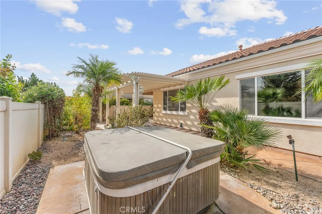 Welcome to your new sanctuary in the heart of the highly desirable Solera community, an exclusive 55+ active adult neighborhood in beautiful Beaumont. This stunning two-bedroom, three-bathroom home showcases the largest floor plan available, providing you with an abundance of space and comfort for all your lifestyle needs. As you step inside, you’ll immediately notice the meticulous attention to detail and the pristine condition of this lovely residence. The home features an inviting layout, highlighted by a spacious living area that flows seamlessly into the dining space and kitchen, creating the perfect setting for family gatherings and entertaining friends. Natural light dances through the ample windows, giving the home a warm and welcoming ambiance. The two generously sized bedrooms offer versatility and tranquility, ensuring a peaceful retreat at the end of each day. The primary suite is a true haven, complete with an ensuite bathroom that includes and upgraded shower and a relaxing atmosphere, providing you with a private escape. The second bedroom can easily serve as a guest suite or hobby room, accommodating your unique needs. There is also an additional office space that allows even more room for activities. Designed for outdoor living, this property boasts low-maintenance landscaping that makes enjoying the California sunshine a breeze. The backyard oasis features delightful fruit trees, inviting you to indulge in the sweetness of homegrown delights. A standout feature of this home is the above-ground jacuzzi, where you can unwind and soak away the cares of the day while enjoying the serene surroundings. Beyond the beauty of this home, location is key! Residents enjoy easy access to major freeways, making commuting a breeze. The fabulous Cabazon outlets are just a short drive away, offering an array of shopping options to satisfy any retail enthusiast. This exceptional home is not just a property; it’s an opportunity to embrace an active, fulfilling lifestyle in one of the most sought-after communities in the region. Whether you are looking to relax in your tranquil home or explore the exciting attractions nearby, this residence perfectly accommodates your desires. Don’t miss the chance to make this beautiful home your own.