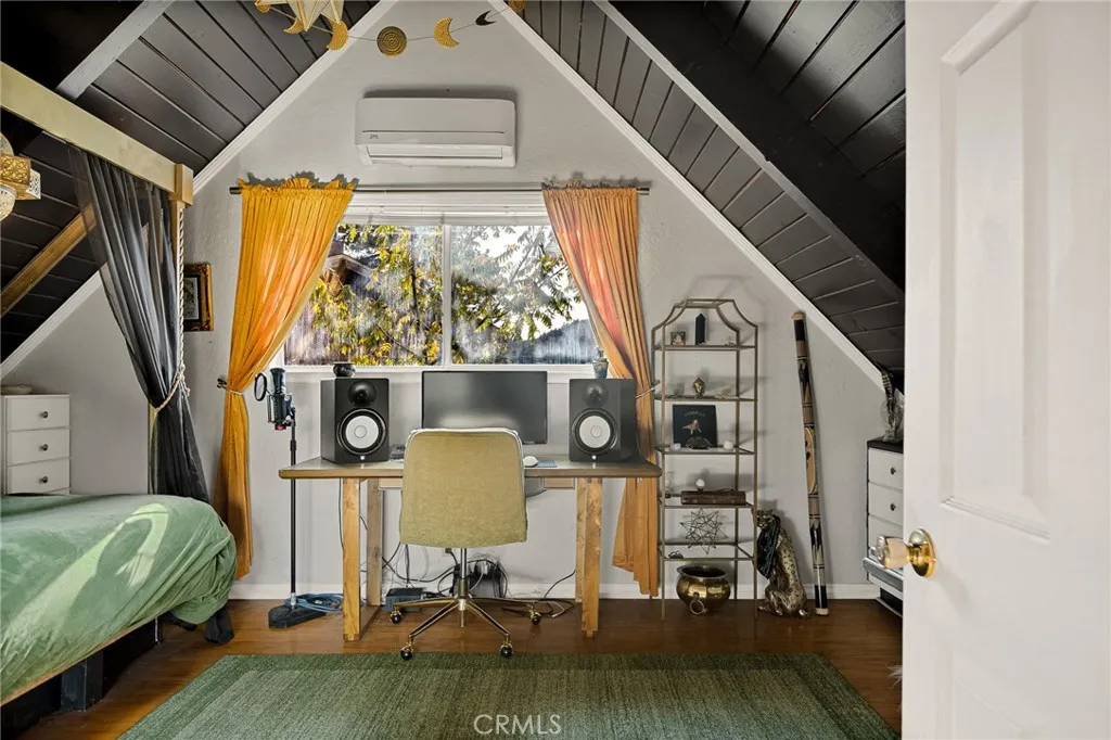 For those drawn to homes with character, story, and magic – The Crescent Manor awaits its next keeper. High on a quiet Crestline ridge where fog drapes the pines, the manor sits perched on a hill with a calm presence, feeling as if it were carved directly from the mountain’s spirit. A convenient level entry leads into this historic cabin, spanning 1,800 sqft, with 4 bedrooms and 3 baths. This is a sanctuary for artists, writers, and musicians seeking quiet, inspiration, and healing. Over the years, creative souls have fled to this home to escape the noise and pressures of city life. The current owner restored the home lovingly with the intention to curate a space that fosters creativity and a connection to one’s highest purpose. Inside, each room has a distinct energy. Upstairs you’ll find two A-frame bedrooms with an updated bathroom. On the main floor is an office or fourth bedroom with its own private bathroom that has an incredible tub and a mature walnut tree just outside the window. The primary suite on the lower level offers space for a king bed and features a private en-suite bathroom complete with a two-person shower, and built-in vanity. Epic views of Crestline can be found on the back deck where there’s a built-in outdoor bed for stargazing and moon worship. In the backyard you’ll find a 300 sqft insulated workshop with power; designed to be your personal sanctuary for creation. It is a quiet space where ideas take shape in solitude and the presence of past creatives still lingers. Though wrapped in serenity, the location delivers practical ease: walking distance to the lake, Goodwin’s market, and the Thousand Pines trail, with an easy commute to the cities below. Modern comforts, including a new electrical panel, new dishwasher, fiber-optic internet availability, and an EV charger blend seamlessly into the home’s timeless atmosphere. The neighborhood itself is a rare gem in Crestline. This street with no thru traffic houses long-established residents who cherish the peace and quiet but will also lend a hand when it’s needed. Close to town yet sheltered by calm, this home is truly a haven for creatives. Come and see if perhaps you are meant to be the next steward of this sacred space.