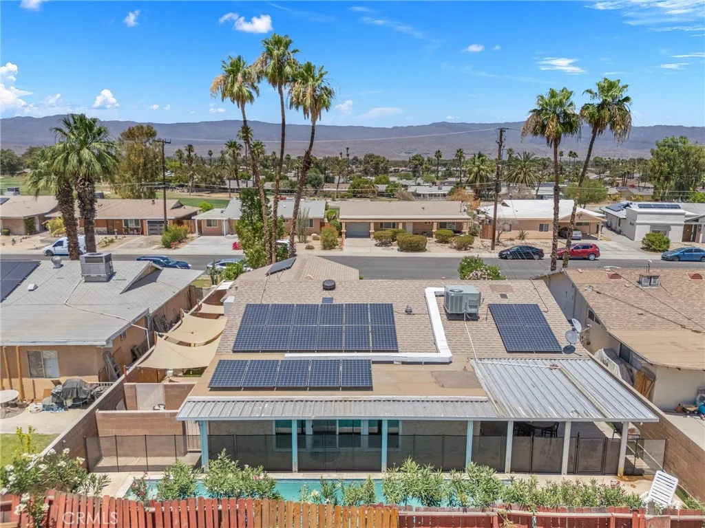Nestled in the serene Palm Desert Country Club neighborhood, this beautifully updated golf community (Par 72 golf course) property is South West facing. Featuring an open floor plan illuminated by natural light and surrounded by lush, low-maintenance xeriscape landscaping. With 3 spacious bedrooms (one can currently be used as an office), 2 full bathrooms and just under 1,700 square feet of thoughtfully designed interior space, this home has it all! Interior highlights include tile & vinyl flooring, recessed lighting, large sun room and oversized walk-in pantry. The gourmet kitchen has stone countertops, newer appliances, custom cabinetry, and a breakfast bar—ideal for both casual meals and entertaining, the generously sized primary bedroom has en-suite bathroom, fully remodeled with a walk in shower and new vanity. Outdoors, there is an expansive covered patio, and a heated sparkling pool & spa —perfect for entertaining under the desert sun. The home is equipped with leased solar panels to help with efficiency. There is also a 1-car attached garage, ample driveway parking, central AC, ceiling fans, and large side yard for a play area or extra patio space. HOA amenities include a club house, dining room, 2 community pools and spa, basketball court and more. The clubhouse and amenities are just a short walk up the road. This exceptional property captures the ultimate Palm Desert lifestyle. Situated just moments from upscale shopping, world-class golf courses, hiking trails, dining options, and the Coachella Valley’s renowned recreational venues: Indian Wells Tennis Gardens, Coachella Valley concerts, Polo Fields, Acrisure Arena & The Courts at PDR featuring 28 pickleball courts & 7 tennis courts. This property is perfect for a full time resident or a vacation rental.