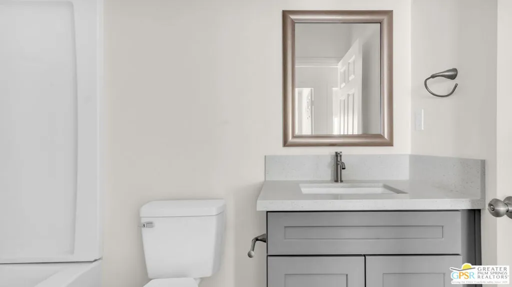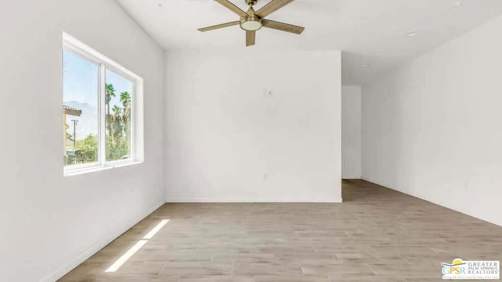 New Construction with No HOA and Solar! This single-story residence features an open-concept layout with stylish upgrades that feature tile flooring that flows seamlessly throughout the living spaces. Clean lines and modern finishes create a sleek, inviting atmosphere. The thoughtfully designed kitchen with stainless steel appliances , waterfall granite counter top opens to the living and dining areas, making it ideal for entertaining or relaxing at home. Private guest quarters, offering flexibility for visiting family, friends, or even a home office. With its combination of contemporary elegance, practical design, and the ease of single-level living, this home is move-in ready and perfectly situated to enjoy everything Desert Hot Springs has to offer. Enjoy your mountain views while entertaining in your fenced back yard. Equipped with Central AC / Heat and Solar.