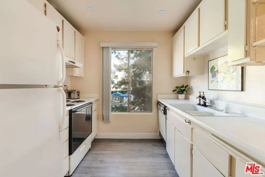 Experience natural serenity minutes from the heart of Culver City in this sophisticated residence, ideally positioned within the FHA approved guard-gated sanctuary of Lakeside Village. This rare first-floor corner unit offers a unique sense of privacy with only one common wall. The inviting open-concept living space is defined by modern recessed lighting, newer vinyl plank flooring and a dining area which flows seamlessly to a private balcony, an idyllic setting for morning coffee or al fresco dining. The sun drenched primary bedroom easily accommodates a king-size bed, an expansive walk-in closet, and two large windows with unobstructed views of the pool and peaceful sycamore trees. The refined bathroom features custom vanity lighting and a shower / tub combo with a glass shower door. Thoughtful modern enhancements include a new electrical panel, central heating and A/C, and a new garbage disposal. Outside the front door, the community offers a lush, park-like environment characterized by winding walking paths, serene lakes, and the gentle sound of waterfalls and streams. Residents enjoy resort-style amenities including three swimming pools (including year-round heated and saltwater options), two hot tubs, a fitness center with sauna, and a clubhouse designed for curated social gatherings. With one assigned covered parking space featuring custom storage solutions and ample guest parking, the home offers effortless functionality. HOA dues provide ultimate ease of living, covering water, gas, cable, internet, trash, and earthquake insurance. Perfectly located just minutes from the creative energy of Downtown Culver City, the upscale offerings at Erewhon and the Culver Steps, West LA College, top rated Culver City schools, Westfield Mall, and all of the exceptional dining and art spaces Culver City has to offer, this is a unique opportunity to experience a peaceful enclave in the heart of Los Angeles’ most vibrant tech and arts hub.