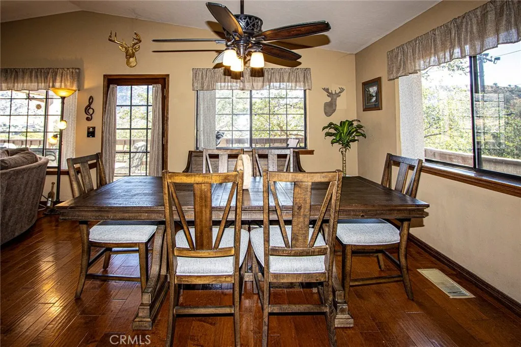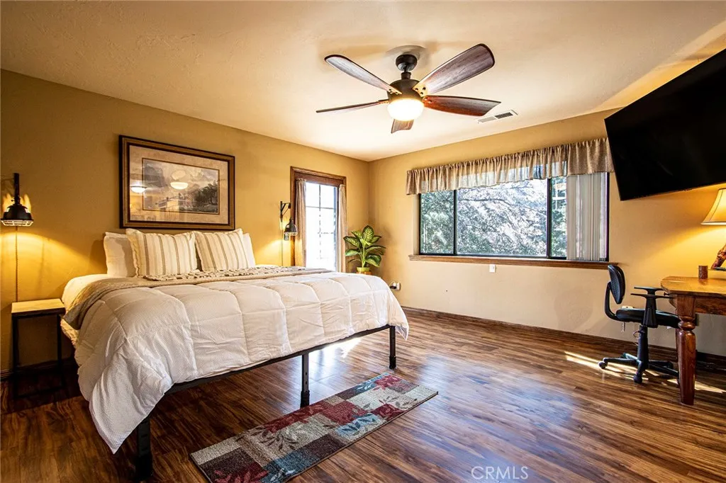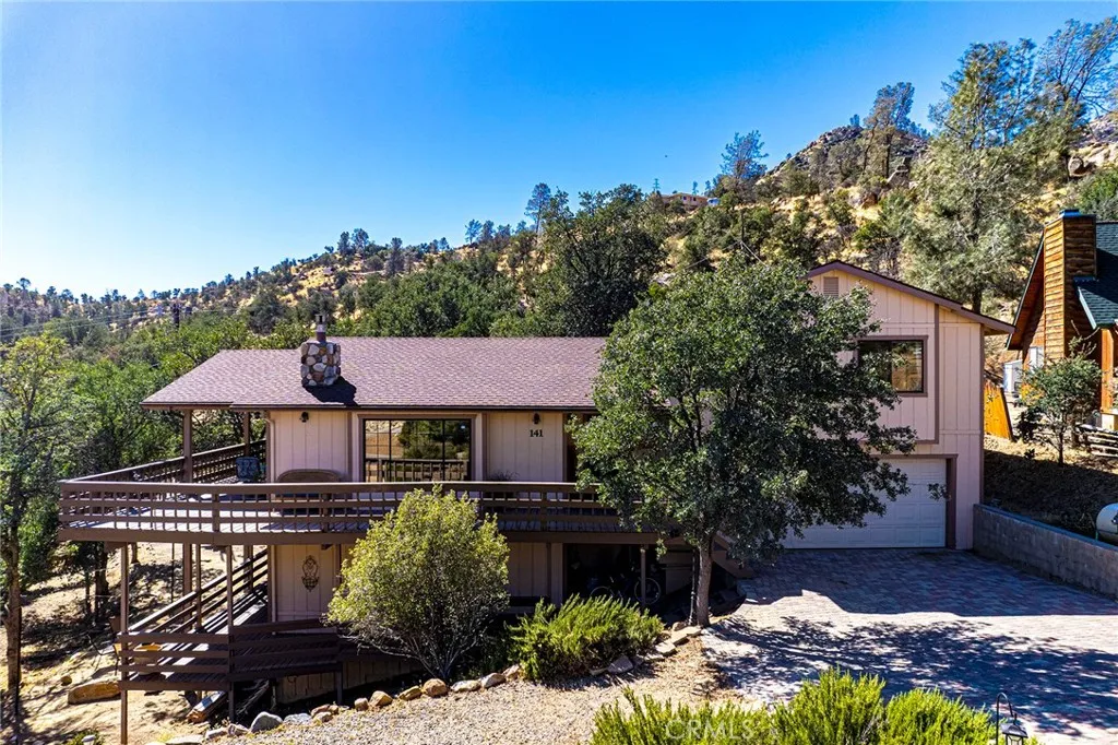 Move in ready view home on nearly one half acre above downtown Kernville. Two wraparound decks create outstanding outdoor living with mountain and town lights views. The upper deck offers a fire pit, BBQ, lighting, and ceiling fans with seating for gatherings. Updated systems include owned solar panels and a newer HVAC installed within the last three years per seller. The oversized extra deep garage is currently used as a game room and connects to the interior. Finished lower level with separate entrance, central heat and air, half bath, and ceiling fans not included in recorded square footage. Public record shows 3 beds and 2 baths. Flexible plan can function as an office or fourth sleeping area with a half bath. Minutes to the Kern River, Lake Isabella, hot springs, and the Sequoias. A great base for hiking, rafting, boating, fishing, and year round recreation. Private setting yet close to town. Buyer to verify all information including square footage, permits, and rental regulations. Furnishings negotiable.